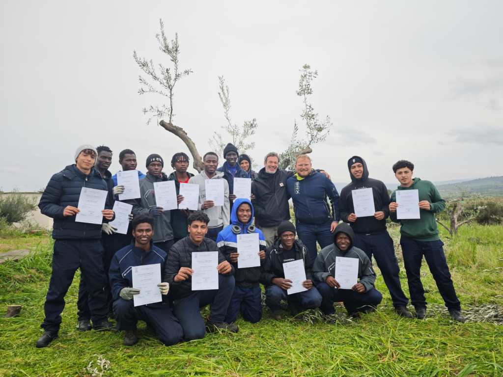 SCORDIA – «La parola “veleno” è chiara a tutti?» «È quello del serpente, no?» «Esatto, ma questo è quello che le piante usano per difendersi da sole». Non è stata solo un’occasione per apprendere alcune tecniche, è stato uno scambio di conoscenze, competenze e anche di traduzioni per semplificare parole e concetti. Si è concluso ieri mattina, in un terreno tolto alla criminalità organizzata in territorio di Scordia, il corso di potatura dell’olivo della scuola “Guido Pannelli” di Spoleto. Destinatari degli incontri di formazione erano i beneficiari dei progetti Sai (Sistema accoglienza e integrazione) per adulti e minori stranieri non accompagnati di Acireale e Catania, accolti nelle strutture gestite dal Consorzio di cooperative sociali Il Nodo.