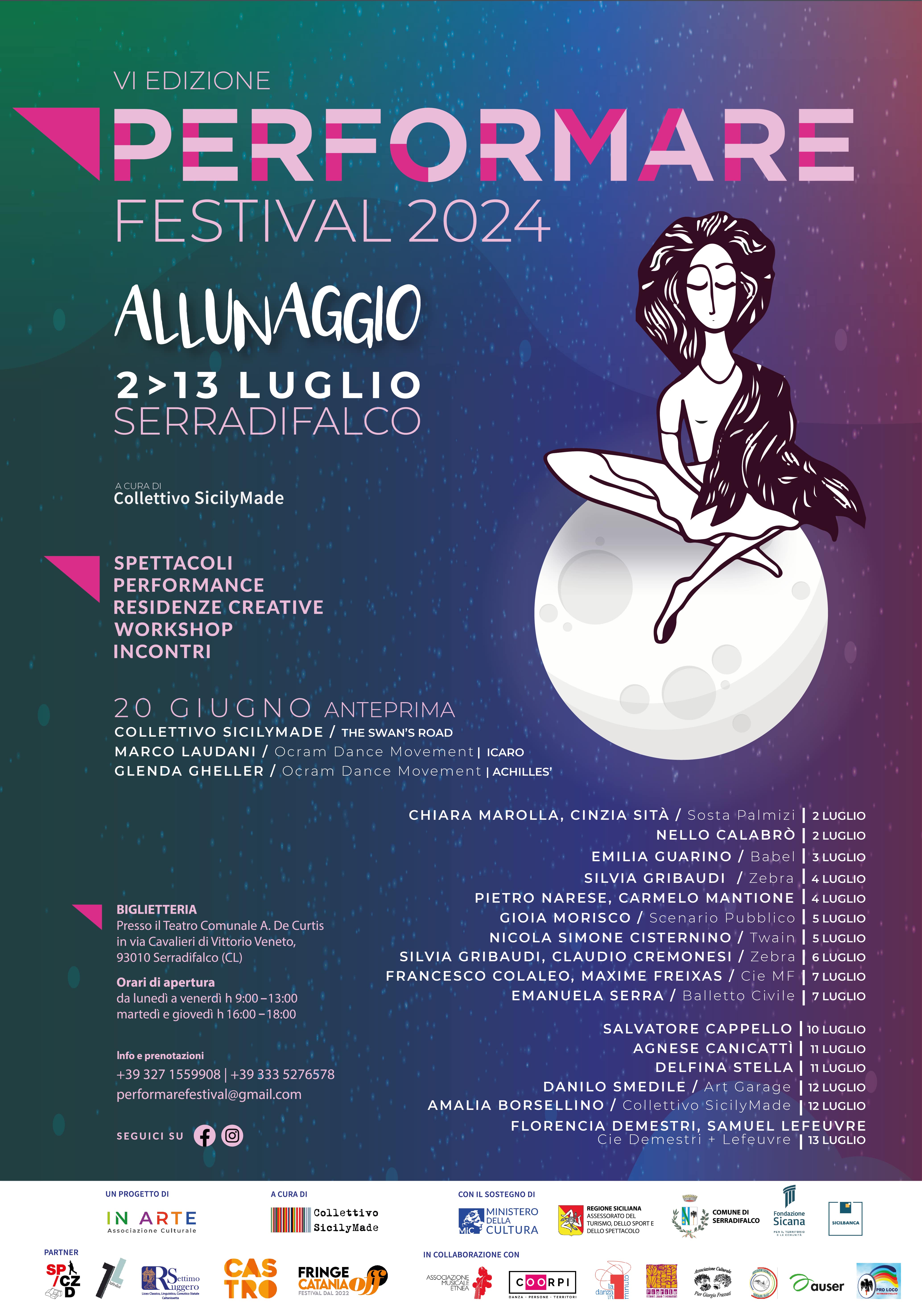 Sta per volgere al termine a Serradifalco (Caltanissetta), la sesta edizione di Performare Festival, evento che mette al centro della propria azione la danza contemporanea e la ricerca artistica, con una ricca programmazione composta da spettacoli, performance, residenze creative, workshop e incontri di approfondimento, in programma fino a sabato 13 luglio.