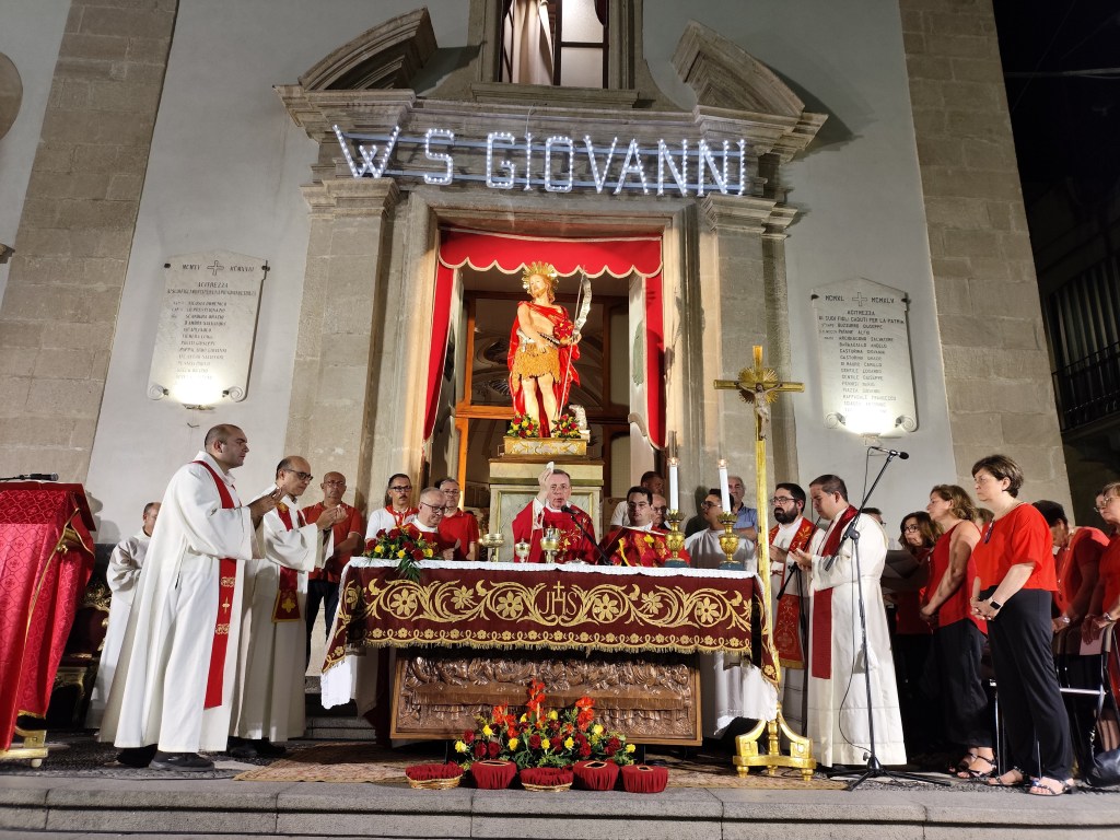 La santa messa solenne presieduta, sul sagrato della chiesa, dal parroco di Gagliano Castelferrato don Pietro Antonio Ruggiero, ha concluso la lunga giornata di fede e devozione che ogni anno Acitrezza dedica il 29 agosto al suo patrono San Giovanni Battista, in occasione della ricorrenza liturgica del martirio. Sin dal mattino un via vai incessante di devoti ha caratterizzato l’ormai tradizionale momento intimo di preghiera e commozione all’interno della chiesa mentre e in serata, dopo la messa con la vibrante ed intensa omelia del celebrante, non sono mancati i riti istituzionali a cura della Commissione dei festeggiamenti (i cui componenti sono stati confermati anche per l’anno 2026). Una rappresentanza proveniente dalla città di Mar del Plata, ha infatti partecipato alla celebrazione e, attraverso Karina e Giorgio Dalla Chiesa, ha voluto consegnare alla Commissione una pergamena di ringraziamento ed una stampa dell’immagine della statua del Battista che la numerosa la comunità di origine trezzota venera nella lontana Argentina. Una targa ricordo, invece, è stata consegnata a Giovannino Valastro che, insieme a Orazio Valastro, Salvatore Valastro, Camillo Valastro, Mario Valastro, Antonino Valastro, Giovanni Vicari, Santo Vittorio, Antonino Finocchiaro, all’associazione “Casa dei pescatori” ed ai cittadini trezzoti, 30 anni fa si impegnò alacremente per la realizzazione della stele di San Giovanni Battista che, ancora adesso, si erge sul braccio del molo nuovo di Acitrezza. Quella di ieri però è stata una giornata di particolare fermento per il borgo marinaro in vista della giornata di oggi che, per la prima volta nella storia, è iniziata con la straordinaria esposizione dell’antica statua di San Giovanni alla venerazione dei fedeli e culminerà con la processione che condurrà il fercolo per l’inedita visita alla vicina Aci Castello. L’appuntamento principale sarà alle 17.30 con la trionfale uscita e l’avvio del corteo che, intorno le 18.15 giungerà al cimitero comunale per un breve momento di preghiera. Alle 19 l’incontro con la comunità castellese all’ingresso della cittadina e la prosecuzione fino alla chiesa madre di San Mauro Abate per la messa solenne presieduta da monsignor Paolo Urso, vescovo emerito di Ragusa. Al termine della funzione, la processione di San Giovanni Battista riprenderà il cammino per raggiungere il palazzo comunale (dove il sindaco Carmelo Scandurra porgerà un omaggio), la chiesa di San Giuseppe (omaggio della Confraternita), piazza Castello (preghiera a cura del parroco monsignor Sebastiano Raciti) e la stele del patrono di Aci Castello (saluto della Congregazione e della Commissione festeggiamenti San Mauro Abate). In serata, quindi, la statua del protettore di Acitrezza farà ritorno a casa via mare, circumnavigando gli scogli dei Ciclopi davanti ai quali il parroco don Carmelo Torrisi impartirà la benedizione rivolta al mare e alle barche di Trezza. Infine, all’arrivo all’interno del porto ci sarà l’omaggio dei componenti della pantomima “U pisci a mari” e uno spettacolo pirotecnico, prima del ritorno in chiesa e della reposizione del simulacro sull’altare maggiore a chiusura di un evento voluto dalla Commissione festeggiamenti in concomitanza con il 40° anniversario della speciale visita della venerata immagine di San Mauro ad Acitrezza.