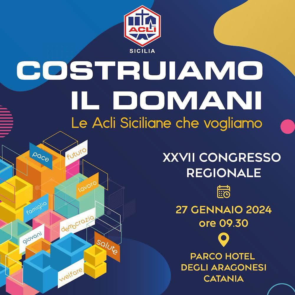 CATANIA – Si svolgerà sabato 27 gennaio, a Catania presso il Parco Hotel degli Aragonesi (Viale Presidente Kennedy, dalle ore 9.30), il ventisettesimo congresso regionale delle Acli delle Sicilia, che avrà come tema “Costruiamo il domani -Le Acli siciliane che vogliamo”.