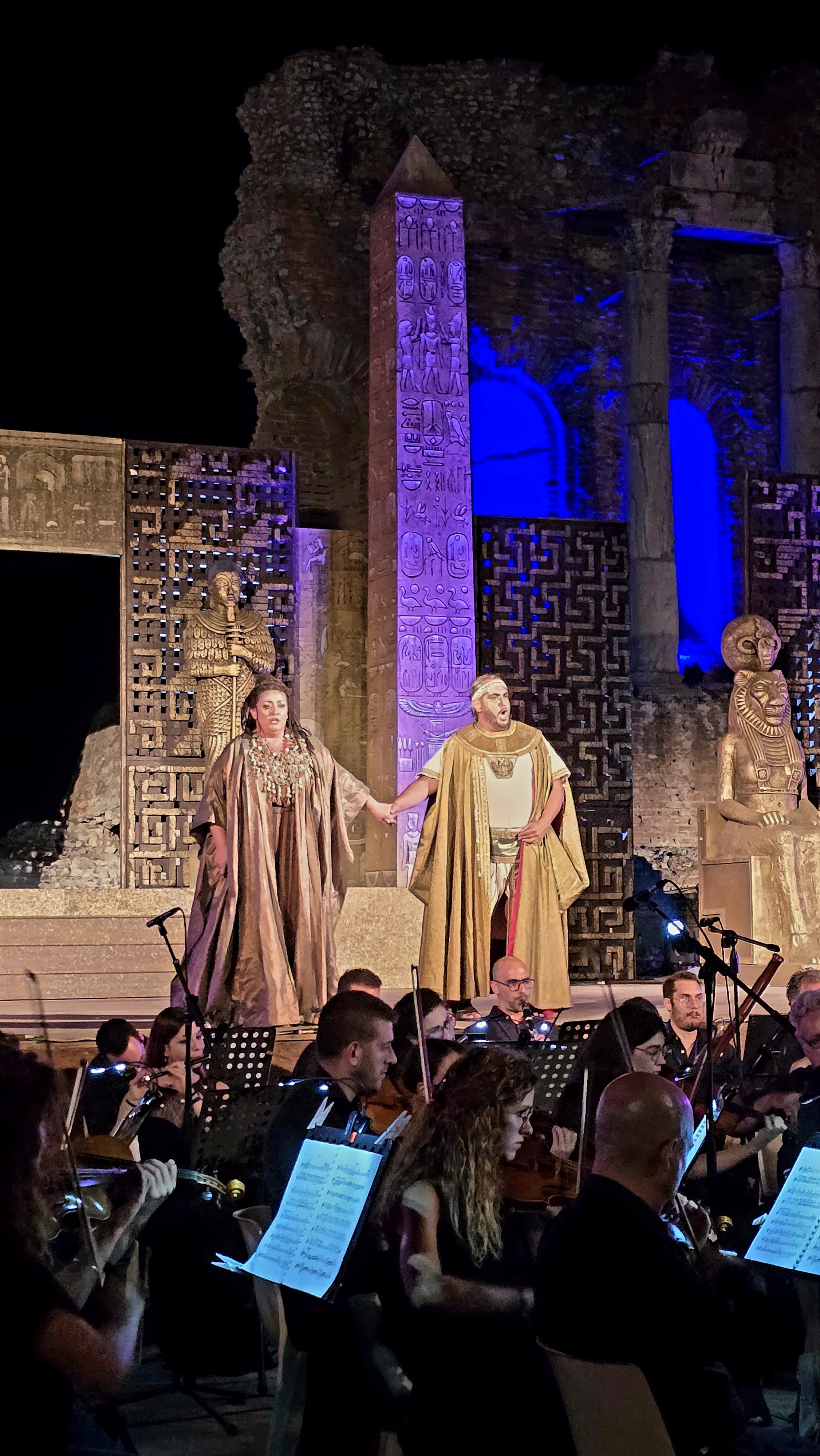 Domenica 24 agosto 2025 il Teatro Antico di Taormina ha vissuto una serata indimenticabile con l’attesissima messa in scena dell’Aida di Giuseppe Verdi, proposto in unica tappa siciliana dal Sicilia Classica Festival. La magia del luogo, unita alla forza della musica, ha regalato al pubblico un’esperienza intensa, fatta di emozioni, applausi e grandi voci che hanno reso vivo l’universo verdiano.
