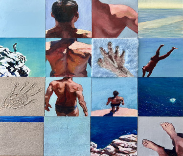 “Accanto alle tele dipinte a olio – spiega il direttore artistico del “Centro d’arte Raffaello” Sabrina Di Gesaro – che ritraggono nuotatori, tuffatori e acrobati che appartengono all’universo espressivo di Nicholas Stedman, l’artista inglese presenterà il nuovo progetto dei polittici, accostando alcuni pannelli dipinti con colori acrilici ad altri rivestiti di pellicce e di sabbia, come elementi che suggeriscono un’ulteriore dimensione multisensoriale”.