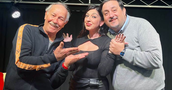 Tutto questo è la commedia brillante di Orazio Bottiglieri dal titolo “Casa di cura per papà”. Sul palco: Gino Carista, Tiziana Martilotti e Orazio Bottiglieri.
