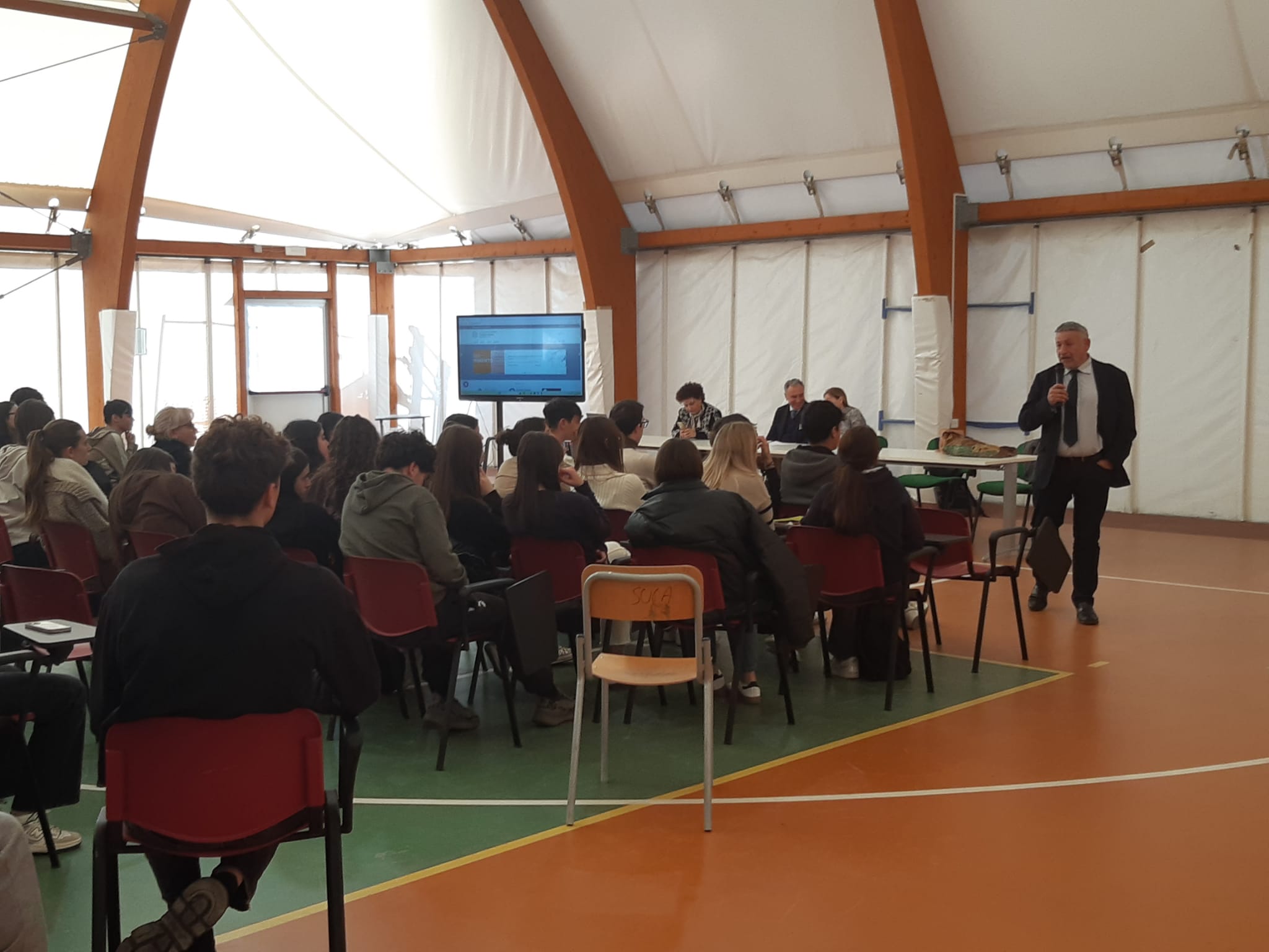 Non è stato un classico convegno unidirezionale: “da chi sa verso chi non sa!”. È stato un vero e proprio “Simposio”, un “dialogo platonico”, se vogliano darne una definizione che fa riferimento all’Antica Grecia, nella quale tutte le parti raccolte nell’ampia Tensostruttura dell’Istituto hanno portato sapere e competenze esperienziali, e confrontandosi e discutendo ne hanno fatto un sapere comune e condiviso. E questo risultato si può raggiungere solo se alla base c’è una preparazione e un percorso scolastico, come in questo caso, fatto bene, a livelli veramente alti, e con docenti preparati e appassionati del loro lavoro come la Dirigente di Istituto e i docenti del Liceo Classico “Giuseppe Garibaldi” che abbiamo incontrato stamattina.