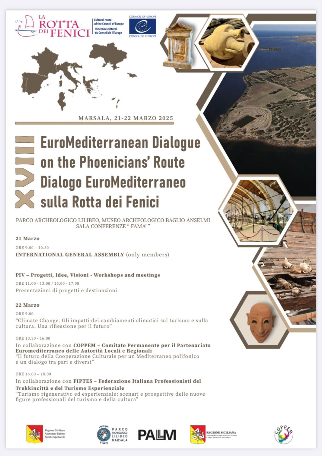 “La prima edizione del Dialogo EuroMediterraneo si tenne nel 2006 proprio a Marsala: ritorniamo con iniziative di rilievo e la prospettiva di nuove e prestigiose collaborazioni – dichiara il direttore Antonio Barone – La Rotta dei Fenici, come chiedono il Consiglio d’Europa e il Parlamento Europeo, gioca un importante ruolo nella valorizzazione del patrimonio culturale, materiale e immateriale, e sul turismo culturale rigenerativo, grazie alla collaborazione degli oltre cento enti istituzionali associati e partner, dal Libano al Portogallo fino al Mar Nero. Si attiva un circuito virtuoso di strategie e programmi innovativi tra i soci come dimostrano i numerosi progetti internazionali che ci vedono protagonisti”.