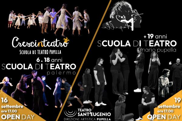 Il teatro Sant’Eugenio di Palermo – Direzione Artistica Pupella, come di consueto in questo periodo dell’anno, organizza gli open day per presentare la propria Scuola di teatro a grandi e piccini. Nello specifico, per quanto concerne Crescinteatro Scuola di teatro Pupella, per gli allievi dai 6 ai 18 anni, l’appuntamento sarà lunedì 16 settembre a partire dalle ore 17; mentre, l’open day per la scuola di teatro “Mario Pupella”, dai 19 anni in su, avrà luogo giovedì 19 settembre, sempre alle ore 17. Entrambi gli appuntamenti si svolgeranno al teatro Sant’Eugenio di piazza Europa 39/41 a Palermo.
