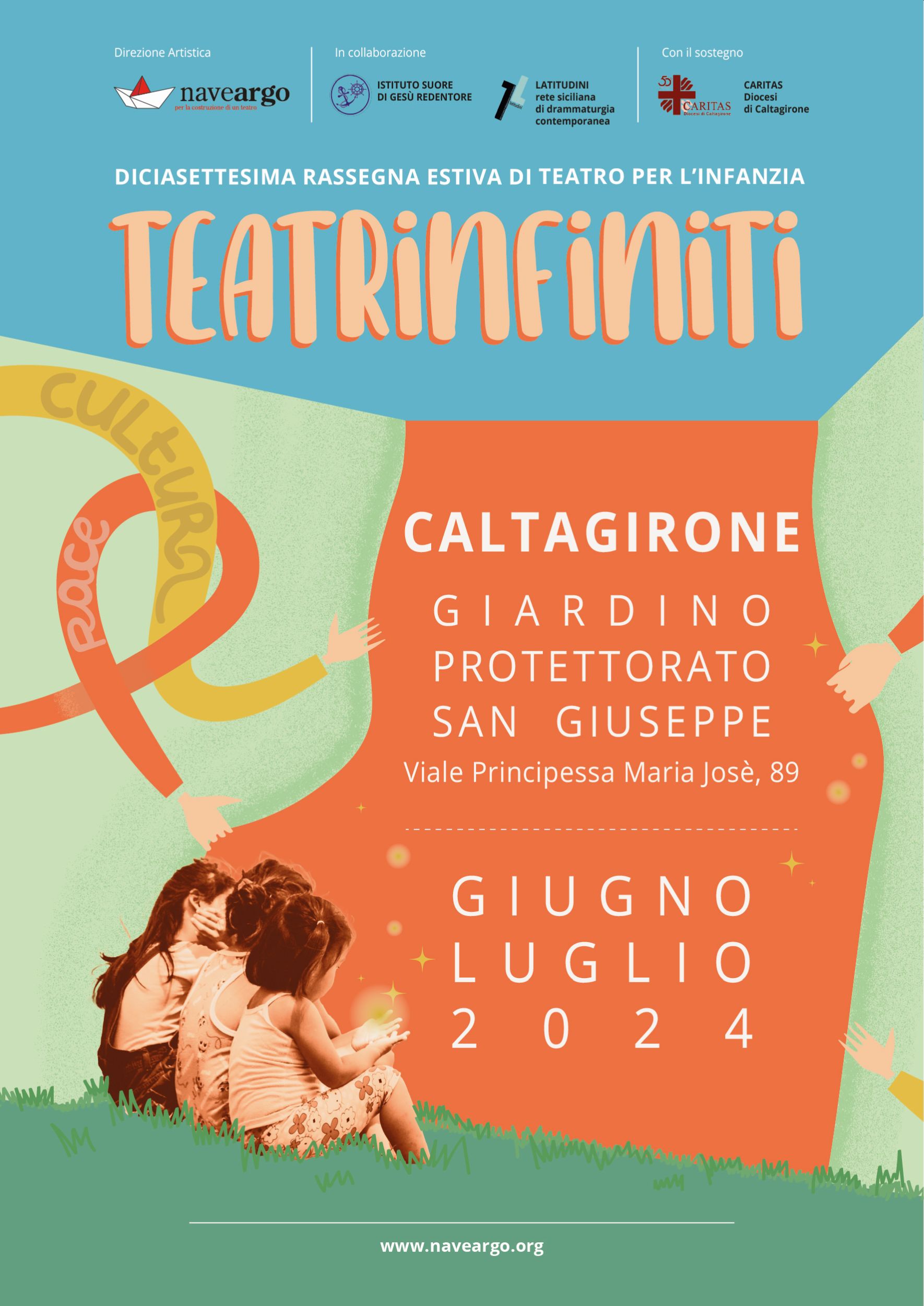 Oggi, 20 Giugno prenderà il via a Caltagirone (CT) la diciassettesima edizione di “Teatrinfiniti”, la Rassegna estiva di Teatro per l’infanzia e le famiglie promossa dall’Associazione culturale “Nave Argo” con la direzione artistica di Fabio Navarra. Confermata la sede di svolgimento che sarà il Giardino del Protettorato San Giuseppe (Viale Principessa Maria Josè n.89) con la cui Direzione già da anni l’associazione condivide un percorso di promozione sociale e culturale presso la Comunità calatina.