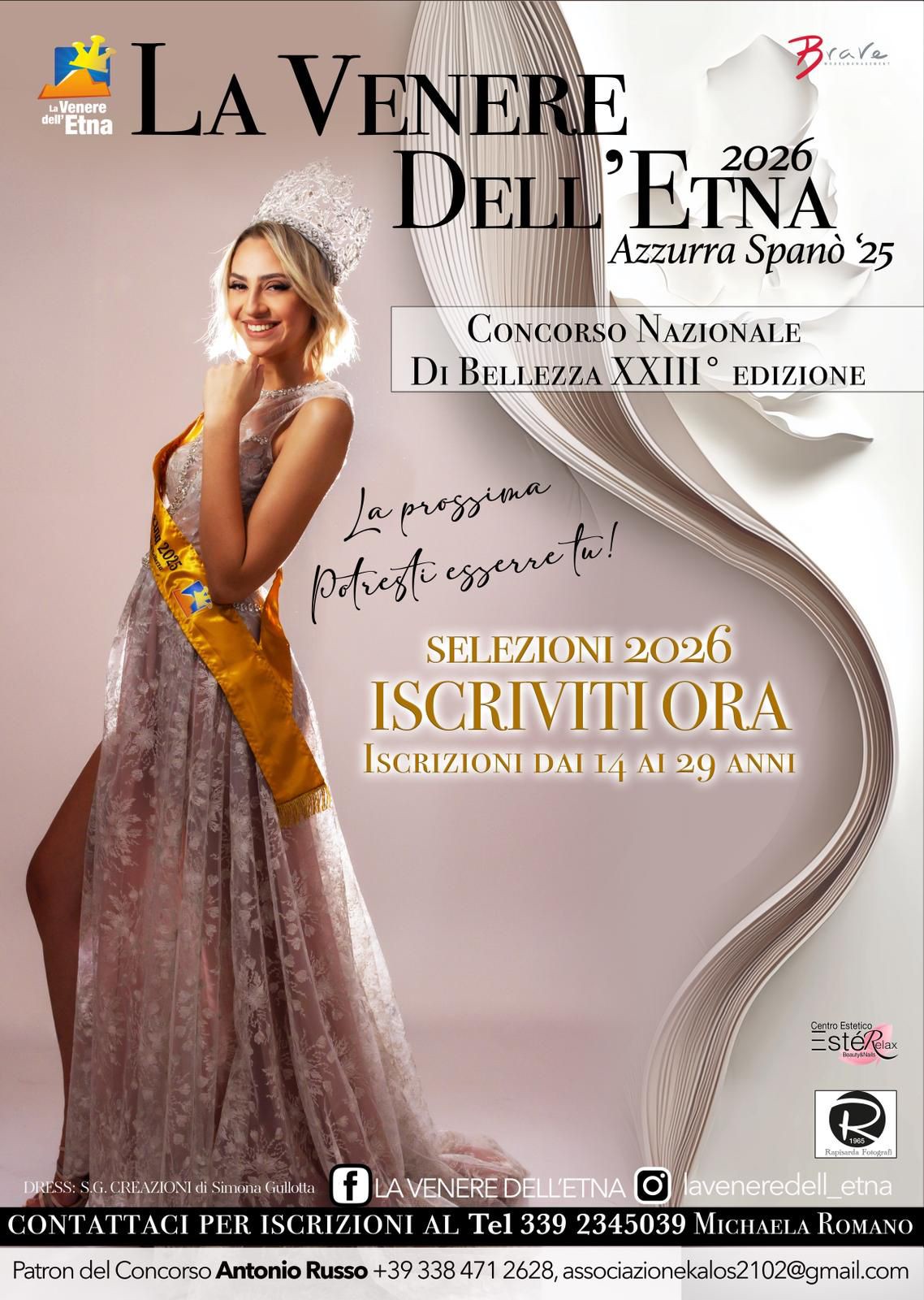 A guidare la nuova stagione sarà Paola Parisi, presentatrice ufficiale del concorso, che sarà affiancata da Azzurra Spanò, Venere dell’Etna in carica, e da Elena Ferrara, Venere dell’Etna Curvy in carica. Le due reginette accompagneranno lo staff e le partecipanti nel percorso verso la finale, testimoniando con le proprie esperienze il valore umano e professionale della manifestazione.