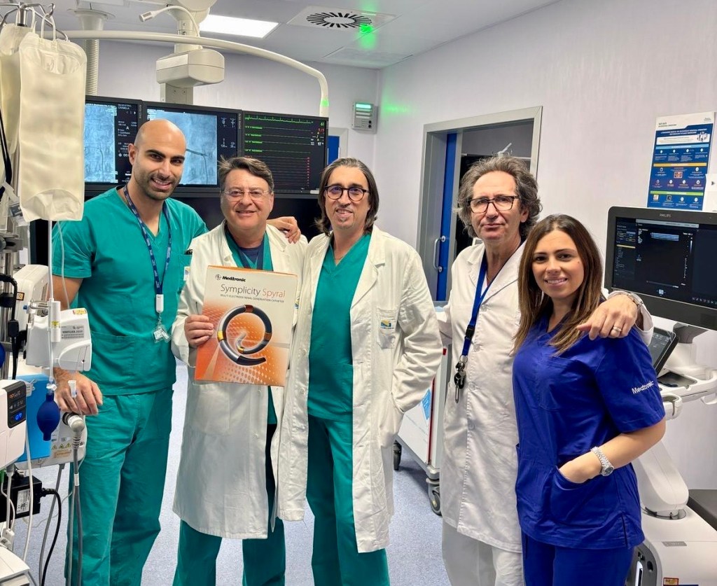 LL’Uosd di Emodinamica dell’Ospedale di Taormina ha recentemente effettuato con successo interventi di denervazione renale, una tecnica innovativa per il trattamento dell’ipertensione arteriosa refrattaria, ovvero quella forma di ipertensione che non risponde adeguatamente alla terapia farmacologica convenzionale. L’intervento di denervazione renale si configura come una soluzione efficace per i pazienti selezionati, contribuendo a un migliore controllo della pressione arteriosa e, di conseguenza, a una riduzione del rischio cardiovascolare a lungo termine. L’intervento mira a bloccare la comunicazione degli impulsi nervosi diretti ai reni e viceversa, disattivando le fibre nervose renali del sistema simpatico. La procedura, che viene effettuata in sedazione profonda e dura all’incirca un’ora, prevede l’impiego di un dispositivo medico che fornisce energia a radiofrequenza a bassa intensità. Dunque, quando le modifiche nelle abitudini alimentari e i trattamenti farmacologici non producono i risultati desiderati, si può passare alla denervazione delle fibre nervose. Il dott. Giuseppe Cinnirella responsabile della Uosd di Emodinamica di Taormina e la sua equipe composta dai medici Paolo D’Arrigo, Gessica Motta, Gianfranco Capilli e Graziano Trovato, ringraziano la Direzione Strategica dell’Asp di Messina, il cui supporto costante verso l’innovazione ha reso possibile l’implementazione di tecniche all’avanguardia, migliorando il percorso di cura per i pazienti affetti da ipertensione resistente. Ulteriori ringraziamenti anche al primario di Anestesia e Rianimazione, dott. Giacomo Filoni, per l’eccellente assistenza anestesiologica fornita durante le procedure.