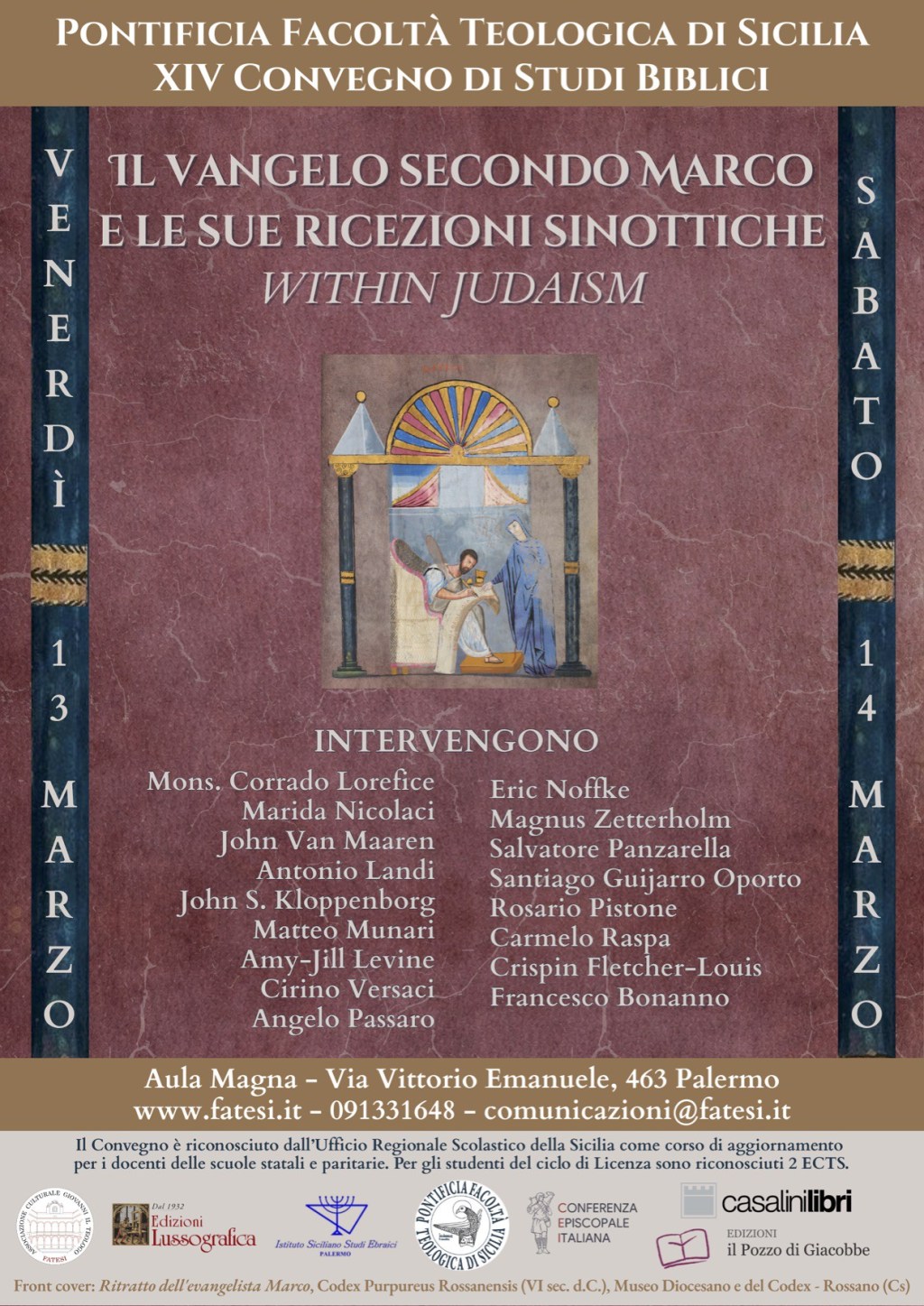 Il convegno, di caratura internazionale, chiude così il biennio di ricerca del Dipartimento di Studi biblici della Facoltà Teologica di Sicilia dedicato a L’ebreo Gesù, la sua memoria e la lettura dei vangeli sinottici “within Judaism”. Una verifica rigorosa di quanto già testato e proposto nel convegno del 2024. I testi sinottici vengono interrogati non come documenti di separazione, ma come testi situati entro l’universo giudaico plurale del I sec. d.C.: si tratta di analizzare cosa cambia nella lettura del Vangelo secondo Marco, e delle sue riscritture in Matteo e Luca, quando questi testi non vengono interpretati retrospettivamente alla luce di una frattura già consumata tra i credenti in Gesù come Cristo e il mondo giudaico, ma come opere nate e circolanti all’interno delle dinamiche di costruzione e negoziazione dell’identità giudaica in epoca romana.