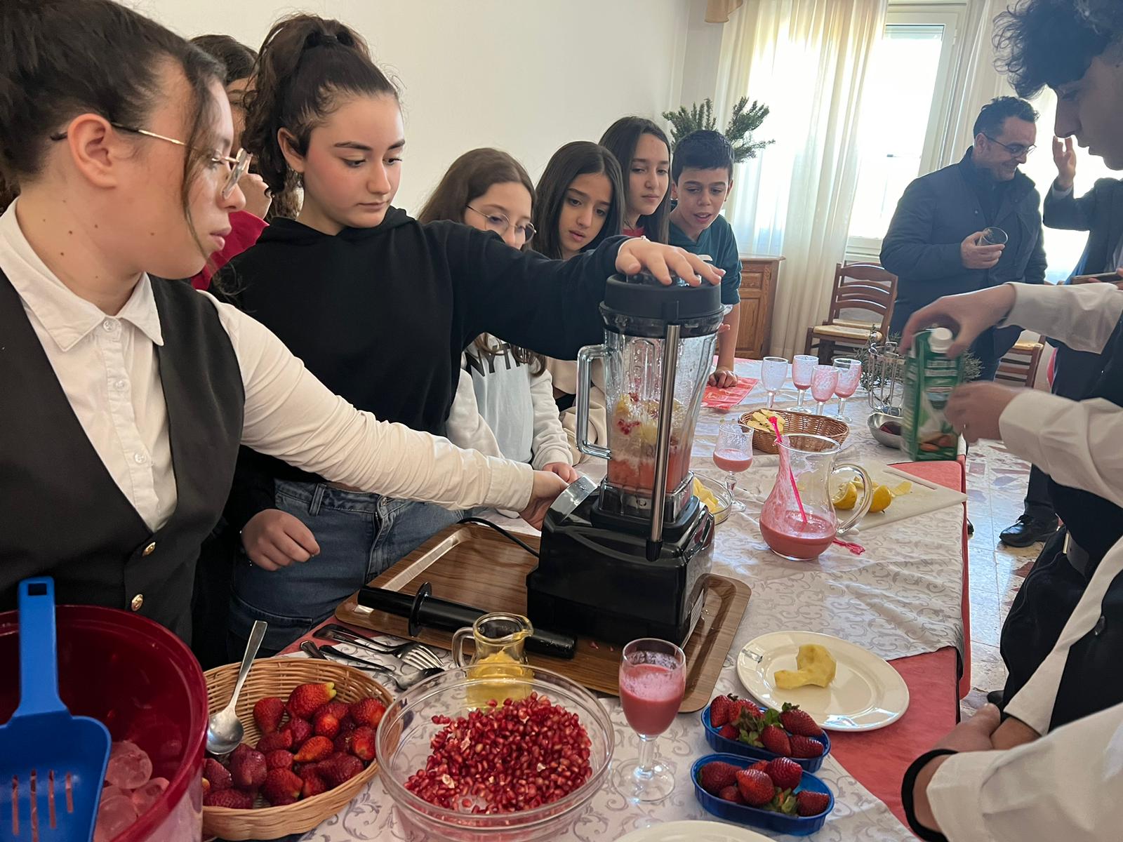 Non solo cibo, ma anche bevande sane e dissetanti. I ragazzi hanno imparato a preparare frullati, centrifugati e spremute utilizzando frutta fresca di stagione. Un modo divertente per assumere vitamine e sali minerali in modo gustoso e naturale.