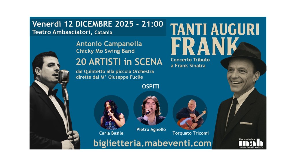 “A 110 anni dalla nascita di Frank Sinatra, proprio nel giorno del suo compleanno – spiega Antonio Campanella – accompagneremo il pubblico in un percorso che andrà dal giovane Frank all’artista diventato leggenda, con una crescita progressiva anche sul palco: dal quintetto alla piccola orchestra, per uno show in grande stile, doveroso omaggio alla sua parabola umana e artistica”.