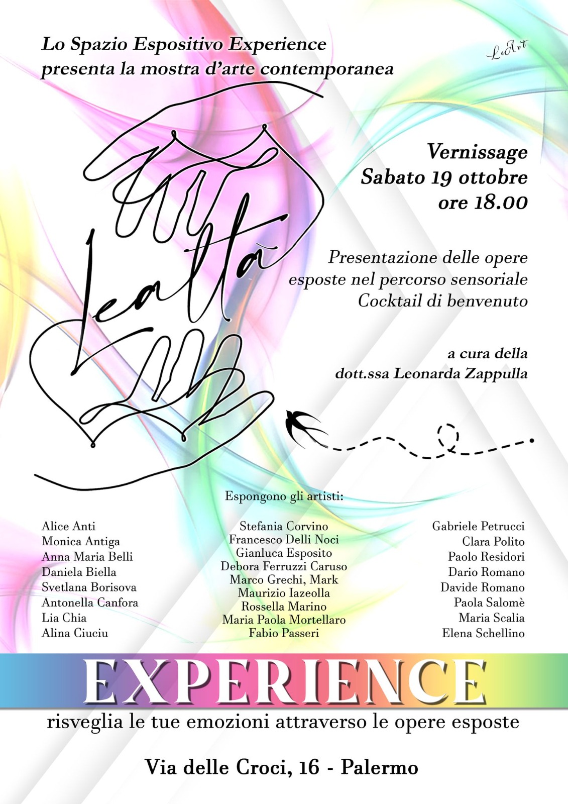 “Lealtà” è il titolo della mostra contemporanea in programma dal 19 al 31 ottobre a Palermo, nei locali dello spazio espositivo “Experience”, in via delle Croci 16.