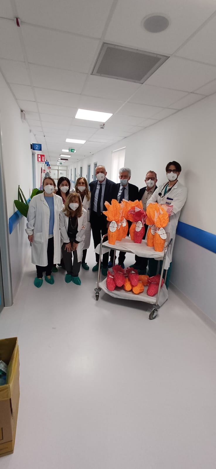 Sempre stamattina, anche i piccoli pazienti del reparto di Pediatria diretto da Nicola Cassata, capo Dipartimento Materno infantile, hanno ricevuto in dono le uova di cioccolato donate dall’agenzia “Immobiliare BeHome”, dal ritrovo letterario “Gattopardo Coffee Book” e dall’Istituto “Linus Garden2”, in occasione della Pasqua.