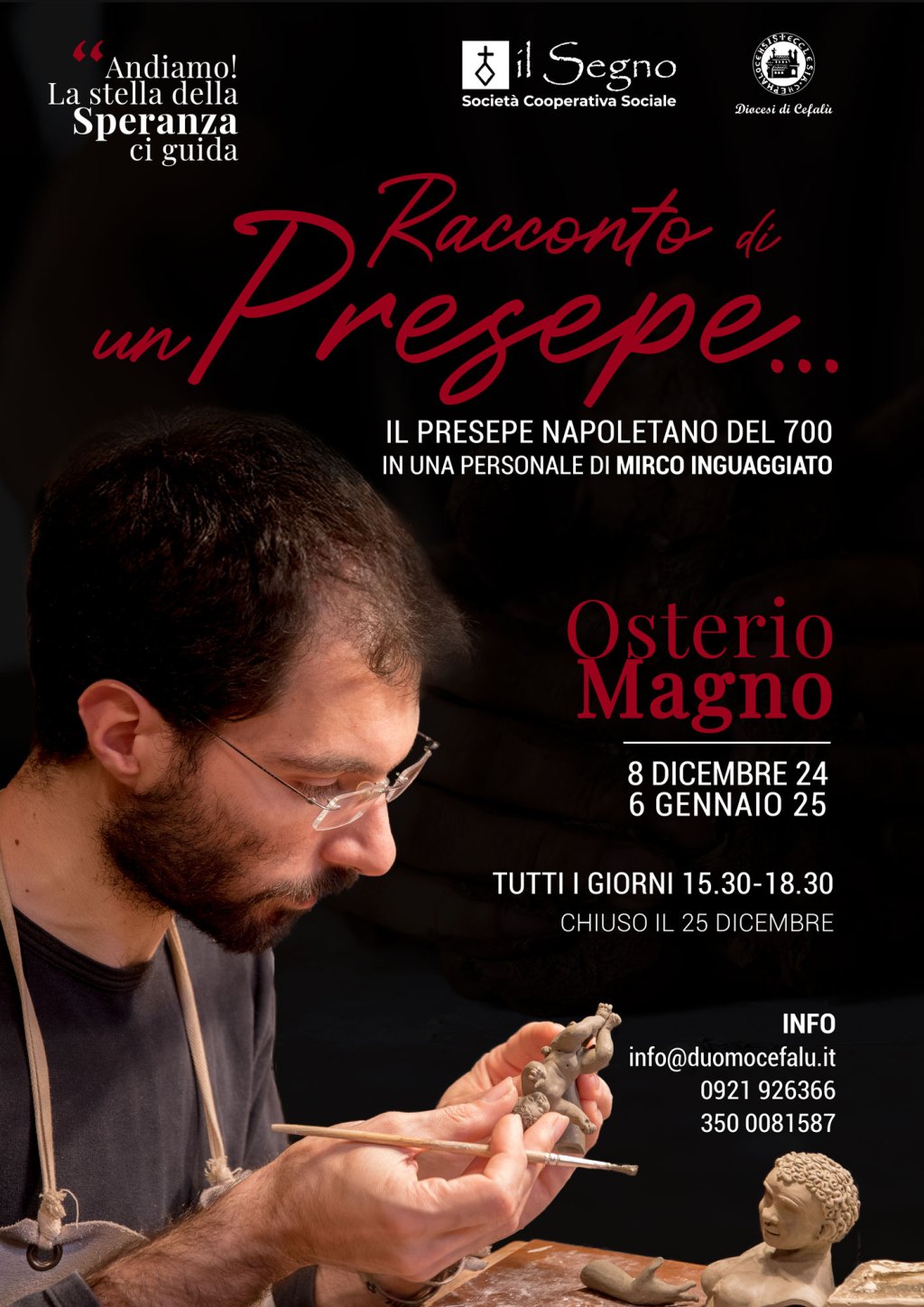 Domani, 8 dicembre 2024, alle ore 20:30 presso l’Osterio Magno di Cefalù (PA), sarà inaugurata la mostra intitolata “Racconto di un Presepe… Il Presepe napoletano del ‘700 in una personale di Mirco Inguaggiato”. L’evento è organizzato dalla Cooperativa sociale Il Segno e dalla Diocesi di Cefalù.