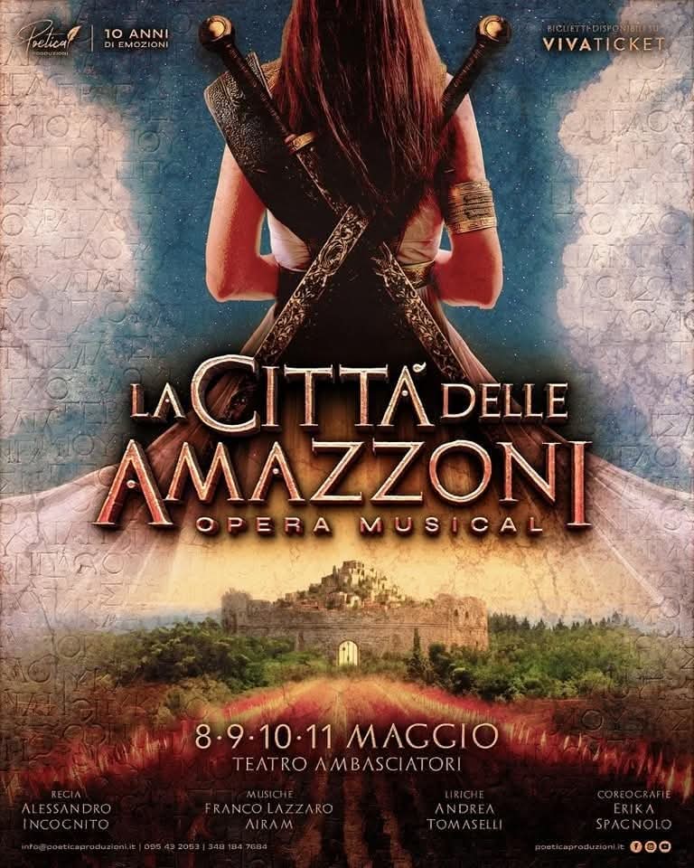 A casa della Poetica Produzioni fervono i preparativi per l’imponente messa in scena de “La città delle Amazzoni- opera musical”, diretta da Alessandro Incognito, che debutterà in prima nazionale l’8 maggio sul palco del Teatro Ambasciatori, con repliche fino a domenica 11 maggio.