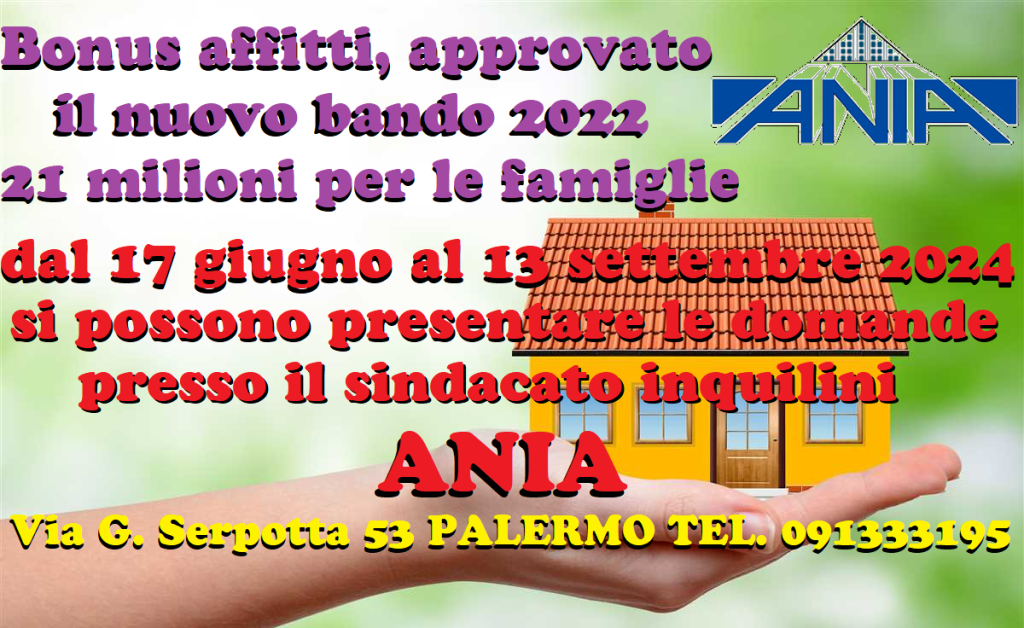Questo Bando sul Bonus Affitto, dichiara Andrea Monteleone Segretario del Sindacato inquilini ANIA, oggi più che mai è realmente uno strumento di equità sociale necessario a sostegno dell’economia reale dell’Isola.
