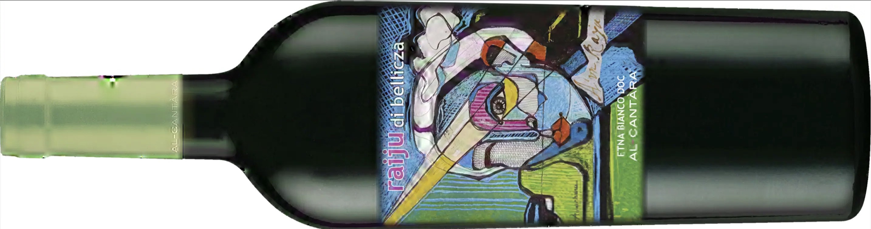 Raju di Bellicza è anche un pregiato Etna Bianco Doc da uve Carricante dal lungo affinamento, con un etichetta pregiata da collezione realizzata e acquerellata a mano dall’artista Annachiara Di Pietro per Al-Cantàra e numerata in poche centinaia di esemplari.