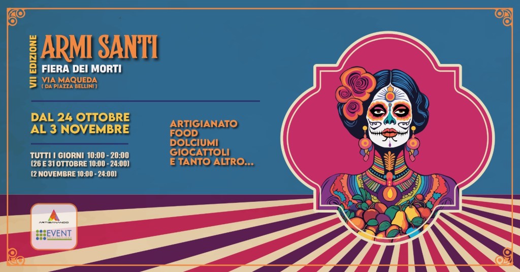 Questa antica filastrocca popolare siciliana veniva recitata la notte prima del 2 novembre, data che segna una delle più sentite feste in Sicilia: la Commemorazione dei defunti. Con essa si invitavano i parenti perduti a lasciare doni e dolci per i bambini ma era anche un modo per farne sentire la vicinanza ed esorcizzare così la paura della morte. A queste parole si è ispirata l’Associazione Artigianando che ormai da diverso tempo a organizza “Armi Santi”, la popolare fiera dei morti che quest’anno, per la prima volta, si svolgerà nella centralissima via Maqueda (da piazza Bellini in poi), a Palermo. L’apertura è fissata a partire dalle 10 di giovedì 24 ottobre e resterà fruibile fino alle 20 di domenica 3 novembre (orari: tutti i giorni dalle 10 alle 20; sabato 26 ottobre e giovedì 31, dalle 10 alle 24; sabato 2 novembre dalle 10 alle 24). L’ingresso alla fiera è libero.