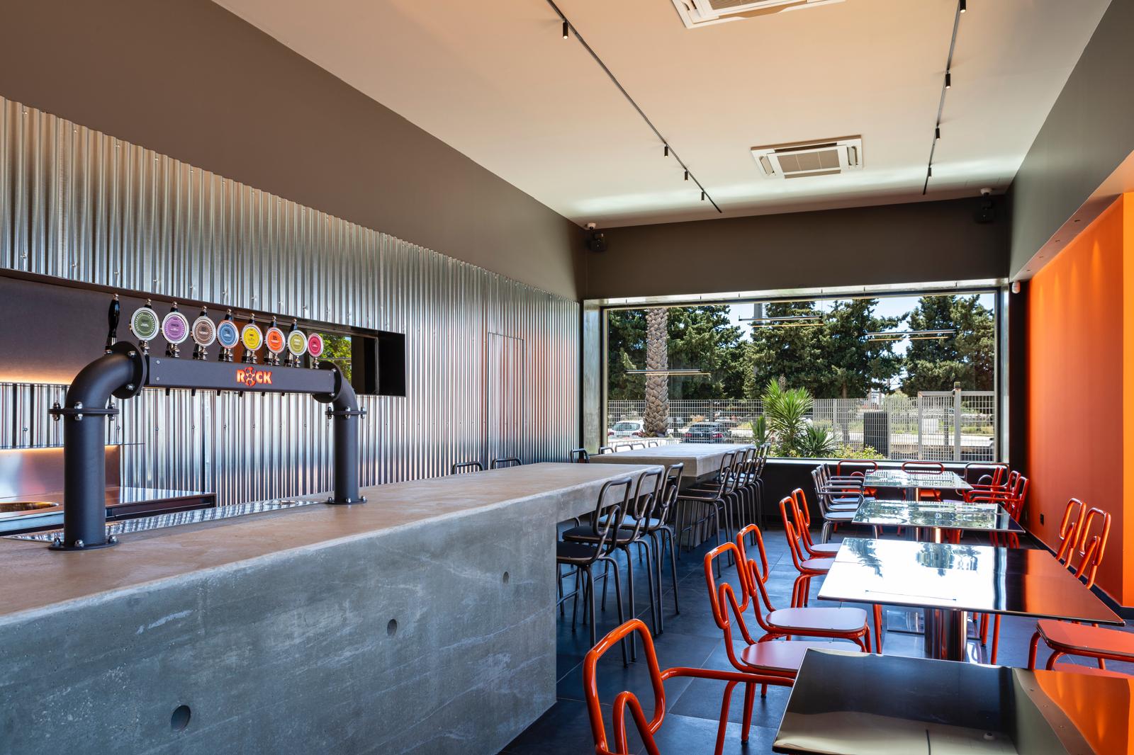 Rock come i suoi colori, un binomio arancione-nero che si riflette sull’acciaio dei tavoli.