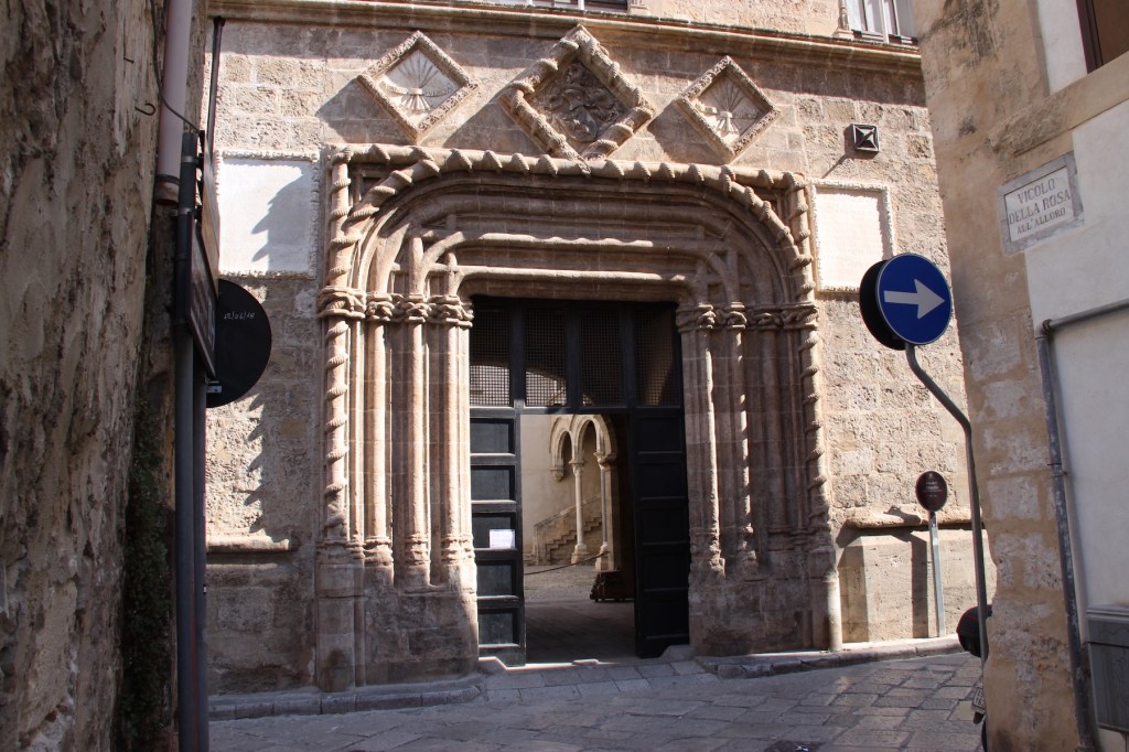 Si comincia dal portale, la porta magna di Palazzo Abatellis, databile successivamente al 1490 anno in cui Francesco Abatellis commissionava al maestro Matteo Carnilivari l’edificazione del palazzo, completata nel 1495.