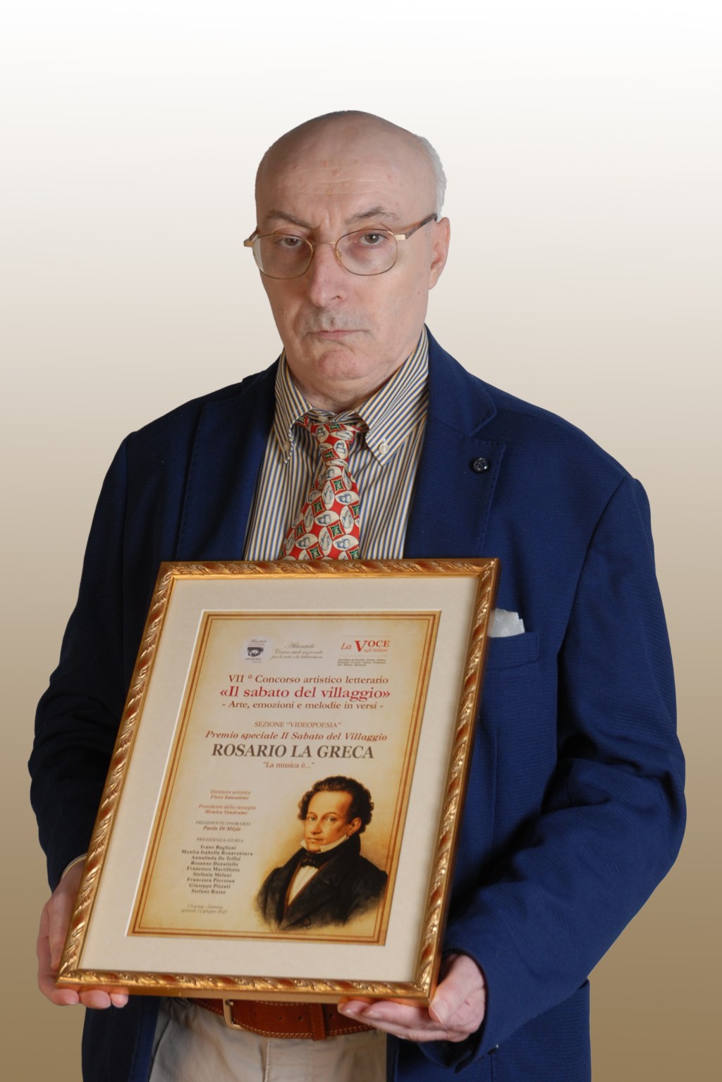 Tra i premiati nella Sezione video poesia, il poeta Rosario La Greca di Brolo (Messina), con il Premio Speciale il Sabato del Villaggio, per la video poesia dal titolo “La musica è…”, un’opera realizzata in collaborazione con il M° Giuseppe Faranda, per la parte musicale e Francesco Destro come voce narrante. Un altro prestigioso riconoscimento per il poeta brolese, che nei 25 anni di attività culturale si è posto all’attenzione nell’ambito letterario, ricevendo tantissimi riconoscimenti, sia a livello nazionale che internazionale. Suoi testi poetici sono apparsi su Antologie e periodici di poesia contemporanea e tradotti in lingua inglese, francese, spagnola e serbo croato. È il Fondatore e Presidente del Premio Internazionale di Poesia “Rosario Angelo Livatino” e del Premio Internazionale di Poesia Religiosa “Beata Vergine Maria di Lourdes”, giunti ormai alla quarta Edizione. Autore di testi musicali iscritto alla Siae, a tutt’oggi, ha composto oltre 50 testi per brani, soprattutto religiosi.