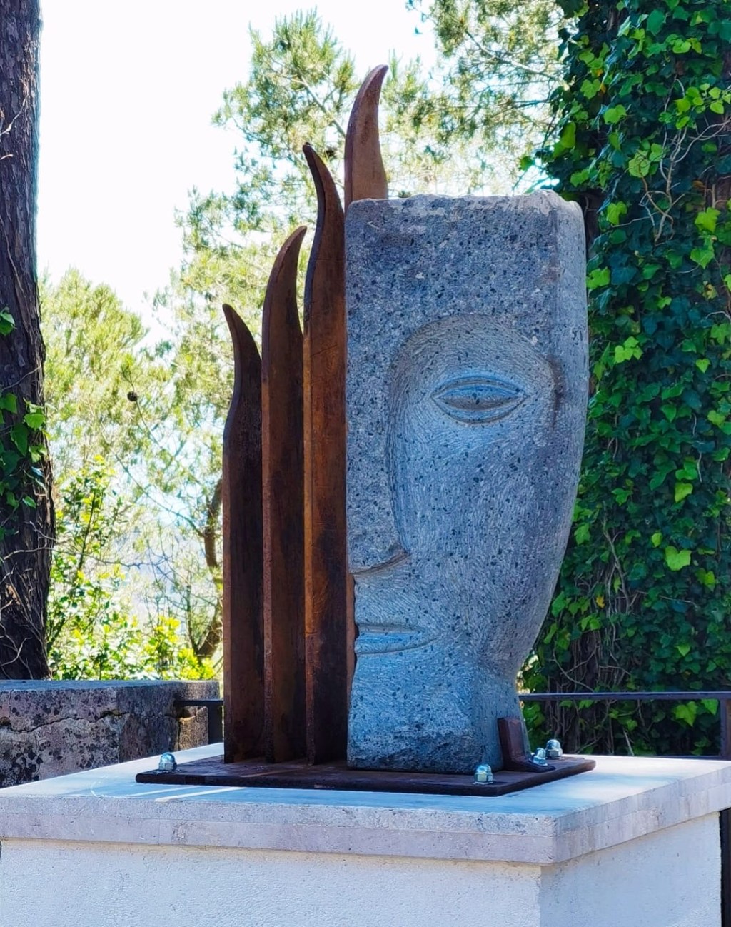 L’opera, collocata stabilmente a Castanea delle Furie, è composta da ferro ossidato e pietra lavica scolpita. Due materiali opposti, simbolicamente e fisicamente, che raccontano insieme la tensione fra distruzione e resistenza, fra morte e memoria. La pietra lavica, materia viva e resiliente, incarna l’integrità morale e la durezza del sacrificio; il ferro, ossidato dal tempo, porta le tracce di una memoria che non arrugginisce, ma si trasforma.