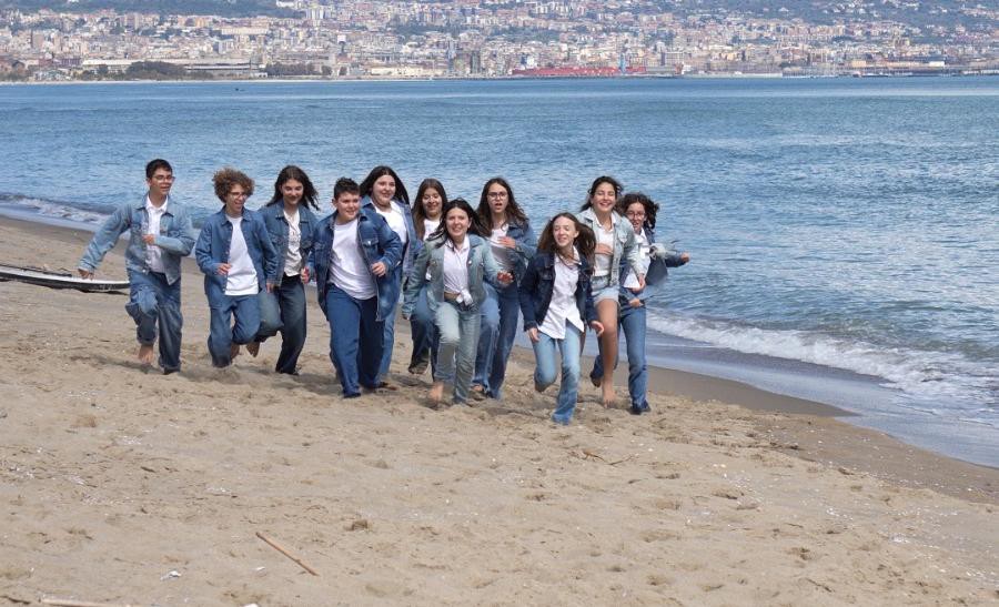 Una parte centrale del videoclip si svolge sulla spiaggia: qui i banchi scolastici diventano colorati, disposti davanti al mare in una scenografia fortemente simbolica. L’ambiente scolastico, inizialmente percepito come spazio di rigidità e osservazione, si trasforma in luogo aperto, dove il gruppo corre, canta, si dispone in cerchio, fino ad arrivare tutti insieme verso la battigia.