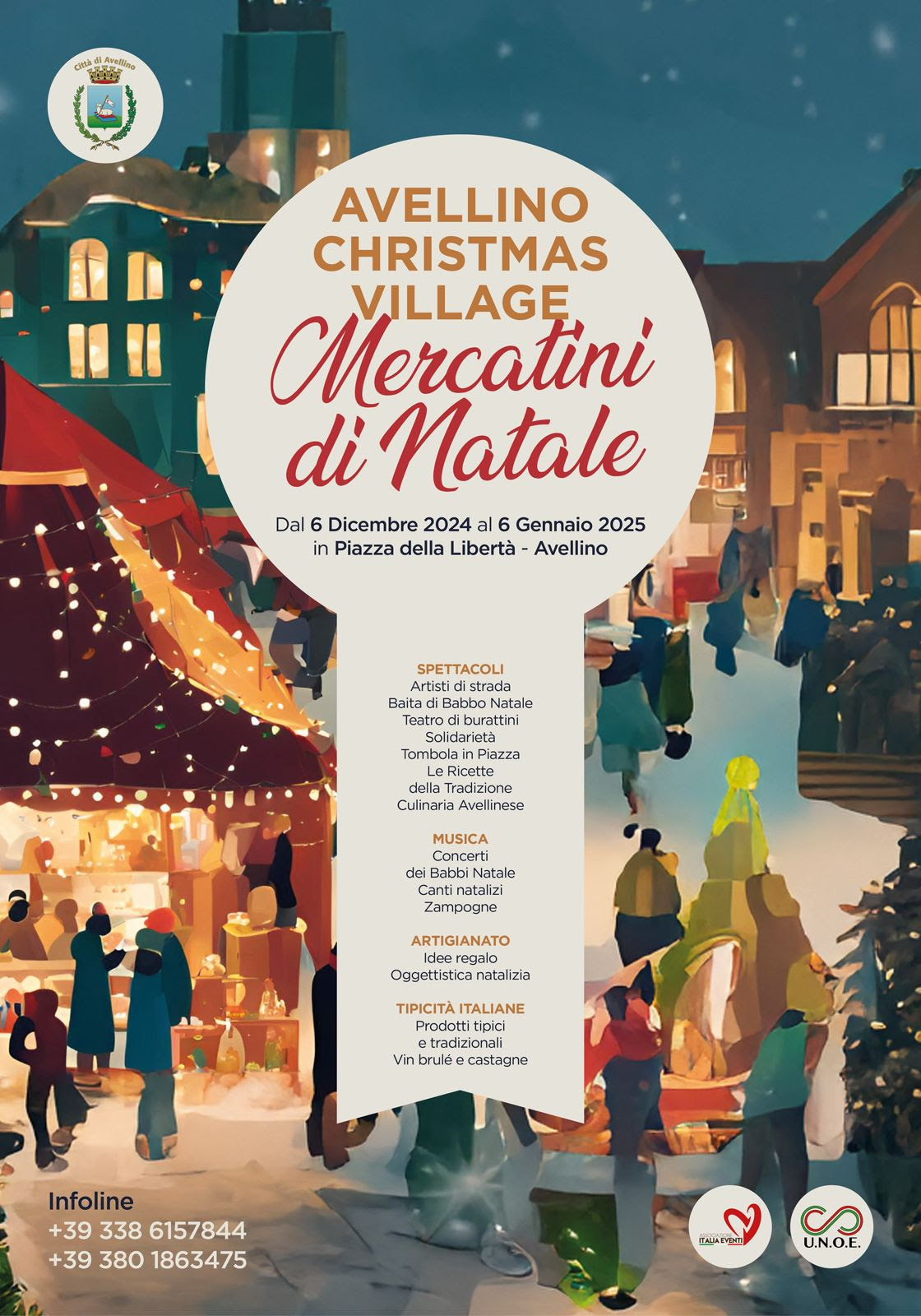 Un mese per celebrare il clima natalizio tra mercatini, spettacoli, artisti di strada, concerti e degustazioni. Questi gli ingredienti principali di Avellino Christmas Village, in programma dal 6 dicembre al 6 gennaio in Piazza della Libertà.