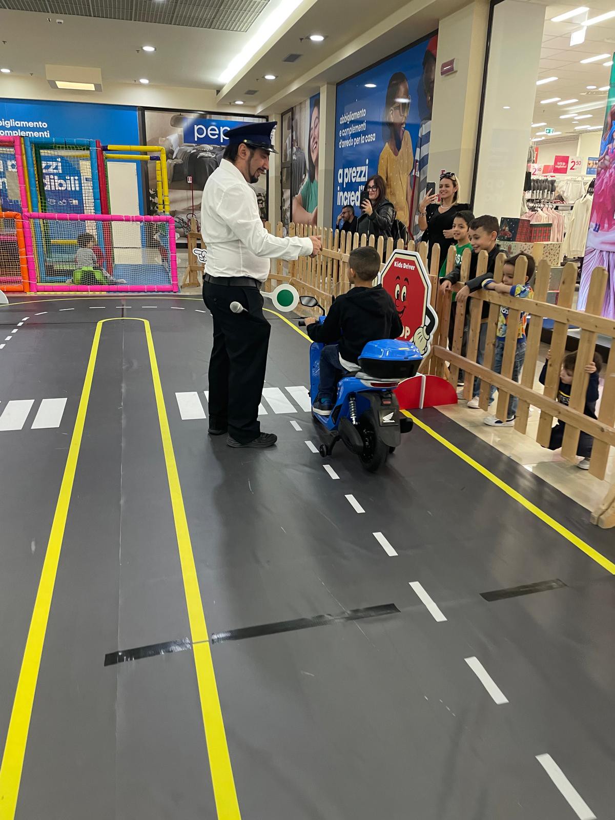 L’iniziativa, pensata per sensibilizzare i più piccoli attraverso il gioco e l’apprendimento esperienziale, ha trasformato gli spazi del Centro Commerciale in un vero e proprio circuito didattico. I bambini hanno potuto imparare le principali regole del codice della strada, riconoscere segnali e comportamenti corretti e sperimentare in prima persona l’importanza della prudenza grazie a divertenti attività interattive.