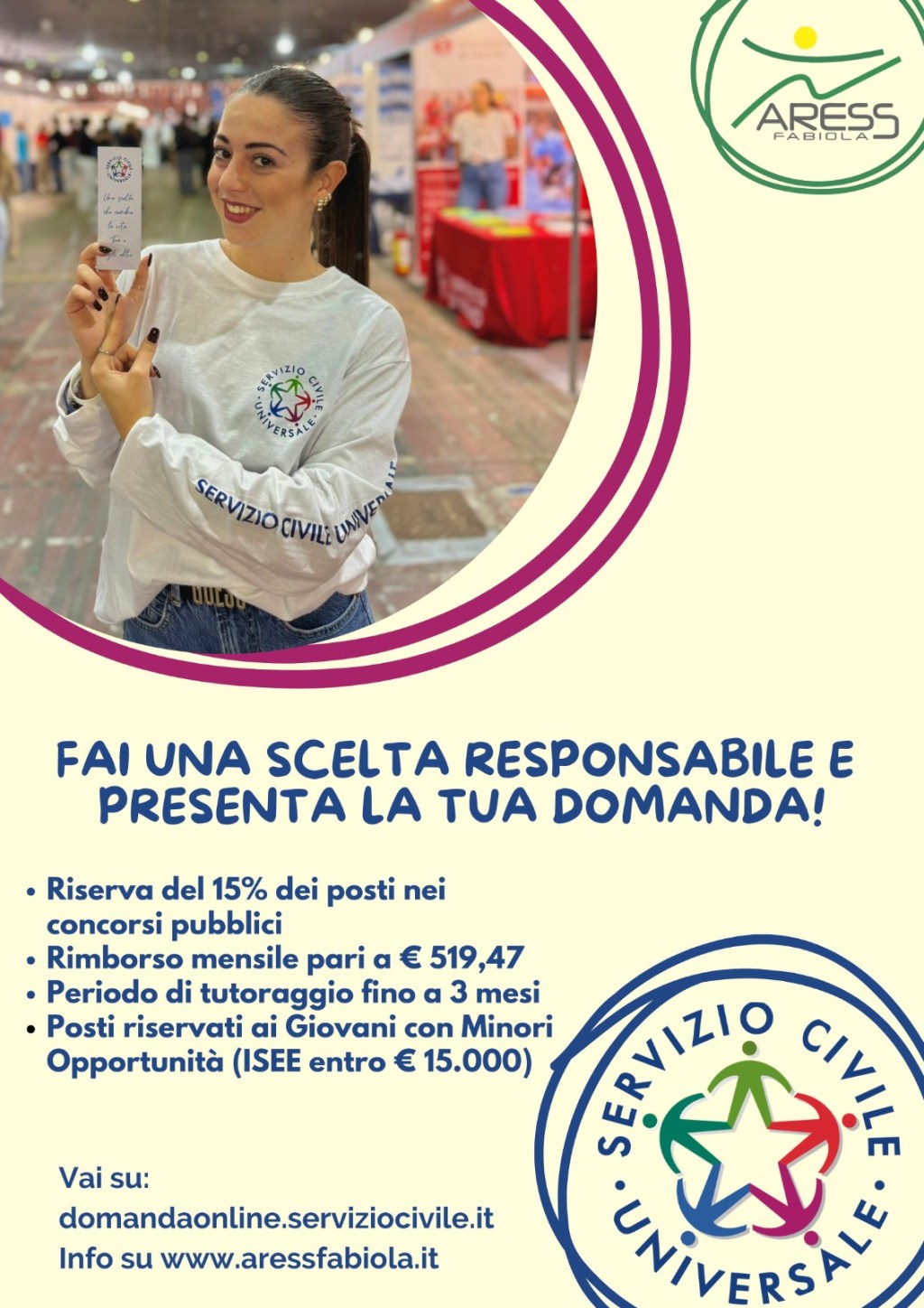 Per info su progetti, sedi e posti disponibili consultare il sito www.aressfabiola.it.