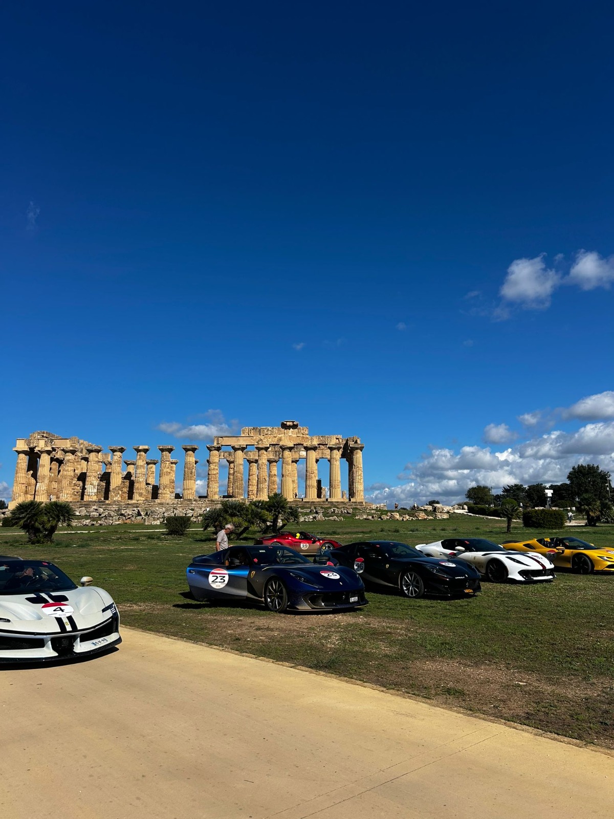 Le immagini parlano da sole: automobili d’epoca provenienti da tutto il mondo sfilano tra le colonne doriche e gli ulivi secolari, creando un cortocircuito visivo e simbolico tra passato e presente. Un momento iconico, che ha già fatto il giro del web.