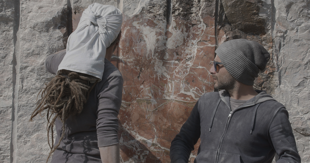 Petrotta, filma per Kumenta, primo atto del progetto “MËMA MË FAL (Mamma Perdonami)”, un intervento scultoreo di levigatura e lucidatura sulla tortura e la repressione di Stato dei due scultori Francesco Albano e Simone Zanaglia. L’intervento artistico è una porzione rettangolare della facciata in roccia della cava di marmo che sovrasta il paese. La superficie levigata ha le stesse dimensioni della cassa in cui venivano tenuti i prigionieri durante le torture. I marmi rossi evocano la carne umana e la levigatura diventa il gesto di accarezzare un corpo dolorante. La parete esposta a nord del “Monte Kumeta”, dove si svolge l’intervento, è anche teatro di un massacro avvenuto il 1° maggio 1947 a Portella della Ginestra.
