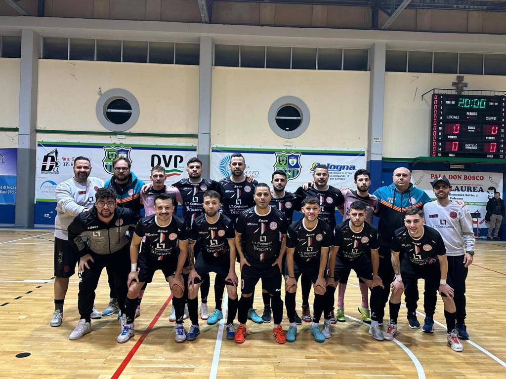 Tre punti d’ oro che consentono al roster di coach Alfonso Miosi, privo di capitan Alessandro Giuliano, Marco Tabita e Ciccio Tuve’, di rimanere a due punti dalla vetta, di blindare e consolidare la seconda posizione allungando a +7 proprio sulla diretta rivale del 3M Calcio a 5.