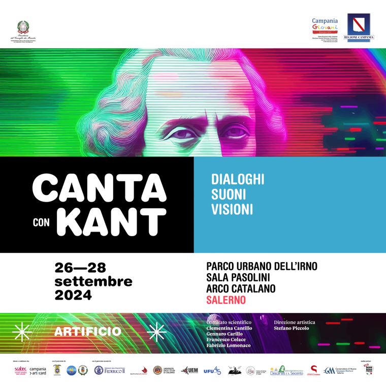 A Salerno, dal 26 al 28 settembre, la filosofia incontra la cultura musicale per dar vita a Canta con Kant. Dialoghi Suoni Visioni, il festival dedicato ai giovani che coinvolge grandi artisti del panorama musicale, filosofi, accademici, giornalisti ed esperti in nuove tecnologie. Dibattiti e talk filosofici, spettacoli, laboratori teatrali e di poesia, riflessioni e interazioni con il pubblico animeranno per tre giorni alcuni luoghi caratteristici della città come la Sala Pasolini, l’Arco Catalano e il Parco urbano dell’Irno.