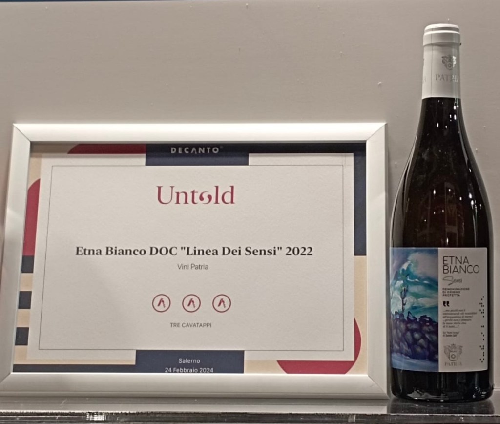Dopo la prestigiosa Medaglia d’Oro conquistata dall’Etna Rosato Sensi 2023 al ‘Concorso Mondial de Bruxelles’, un’altra etichetta della Linea Sensi di Cantine Patria ottiene un premio, questa volta nell’ambito di Vinitaly, la fiera di settore più importante in Italia. L’Etna Bianco Doc Linea Sensi 2022 ha infatti ottenuto ‘Tre Cavatappi’, massimo punteggio attribuito, da Decanto, apprezzata rivista di settore. I tre cavatappi rappresentano il massimo riconoscimento assegnato ai vini che si distinguono particolarmente nel corso di una degustazione alla cieca, raggiungendo un punteggio di almeno 90 punti, in una scala da 1 a 100. Una giuria composta da cinque o più esperti di settore seleziona e giudica oltre 400 etichette. I voti finali, che rappresentano una media dei punteggi attribuiti dalla commissione, si traducono in Cavatappi e determinano i vini vincitori delle varie categorie.