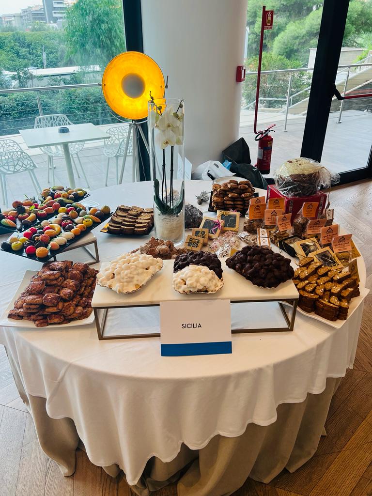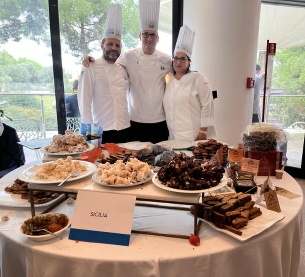 I due cuochi messinesi hanno portato in Puglia quanto di più buono offre la pasticceria messinese. In occasione del Buffet delle Regioni, Romeo e Andreacchio hanno preparato alcuni dolci simbolo della città dello Stretto, come il Bianco e Nero e i Lulù con la panna. Non potevano mancare Nzuddi e Piparelli, preparati per l’occasione dal pasticciere Umberto Terranova. Spazio poi ai presidi Slow Food con la Pasta Reale della pastry chef Isabella Catalano di Tortorici e un assaggio dei primi panettoni artigianali sfornati dalla Bottega Reale della Catalano, che fa parte del direttivo dell’Associazione Cuochi Messina.