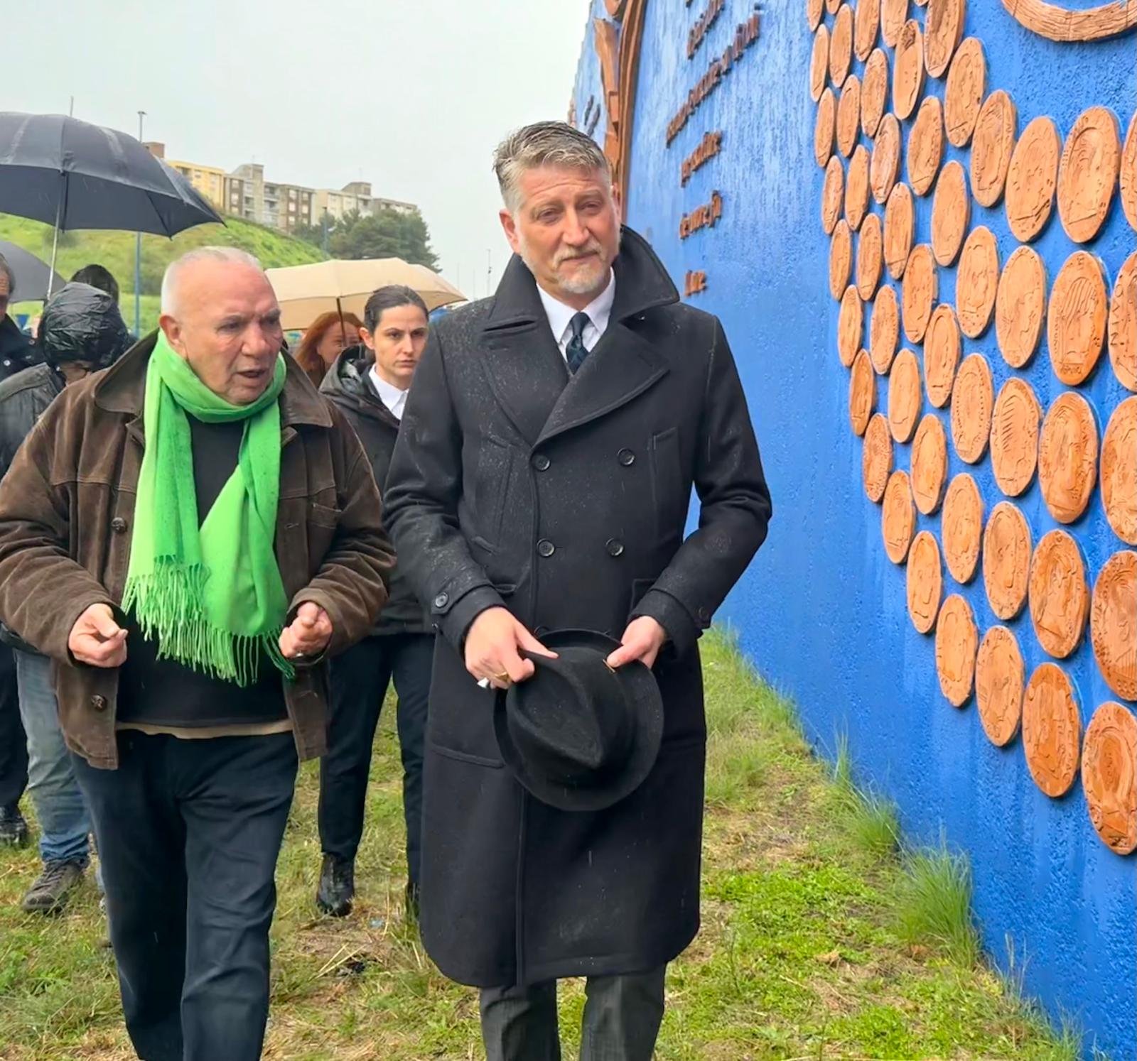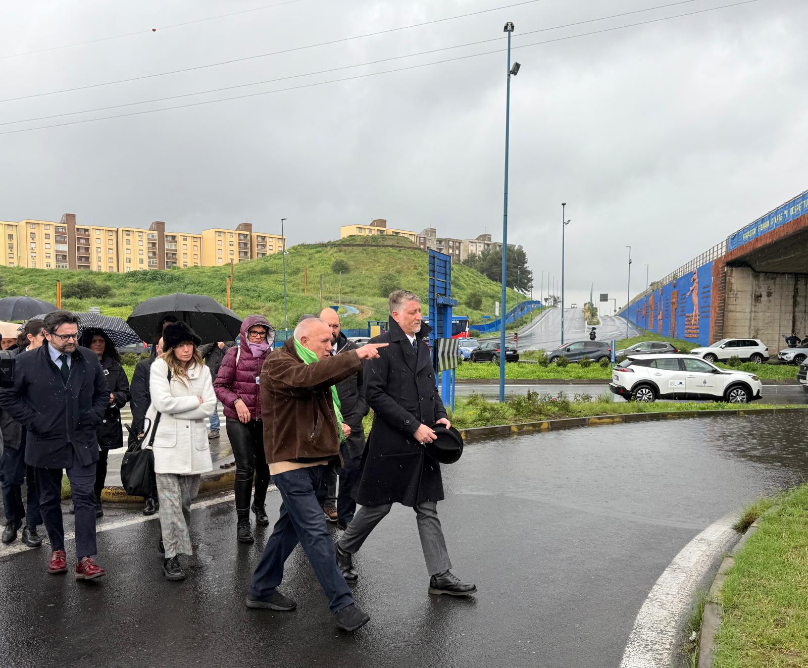 Nonostante la pioggia battente, infatti, il ministro ha voluto percorrere insieme al maestro Presti quel muro di cemento dell’Asse dei Servizi, oggi diventato progetto visionario “che dona luce alla periferia di Librino, restituendo all’Anima un varco che conduce all’esperienza del Sogno”.