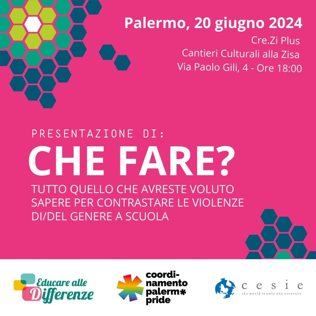 L’evento gratuito è organizzato all’interno della programmazione del #PalermoPride2024, promosso dalla Consulta Cittadina per l’educazione sessuale e affettiva di Palermo.