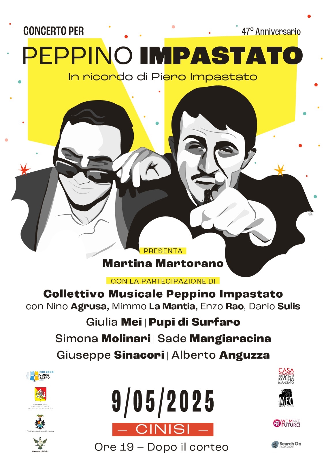 Il Concerto per Peppino si svolgerà simbolicamente accanto all’ex casa del boss Gaetano Badalamenti (Corso Umberto I), a completare il percorso dei “cento passi” che separano i luoghi della mafia da quelli della memoria. Una scelta simbolica, per ribadire con forza che oggi Cinisi è il paese di Peppino Impastato. A presentare la serata sarà Martina Martorano, conduttrice radiofonica e televisiva.