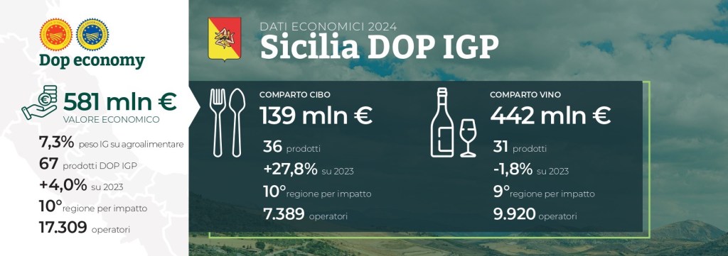In Sicilia, sesta regione italiana, le produzioni Dop (20) e Igp(16) crescono del +4% su base annua collocando la regione siciliana al decimo posto.