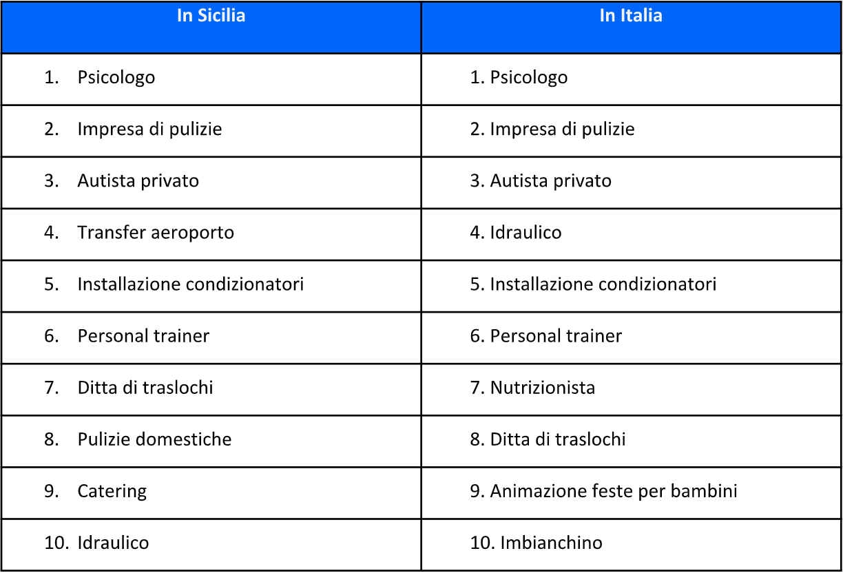 Novità nella Top 10 siciliana, rispetto a quella nazionale, le richieste per i professionisti