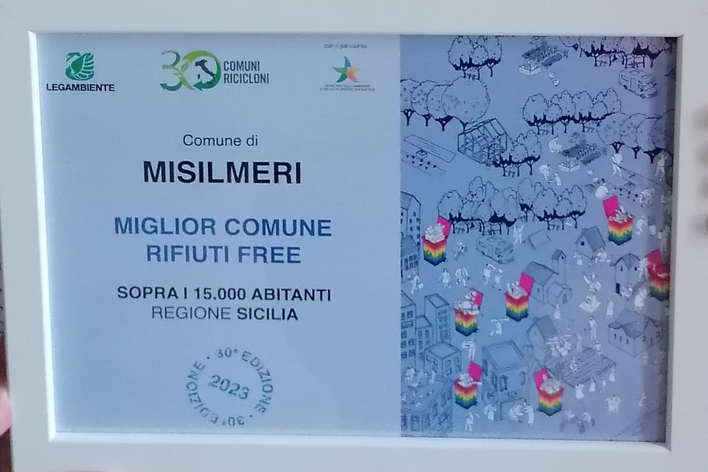Tra i Comuni premiati da Legambiente durante la trentesima edizione del Premio Comuni Ricicloni 2023 spicca anche Misilmeri unico comune, della Regione Siciliana, sopra i 15.000 abitanti ad avere questo speciale riconoscimento.