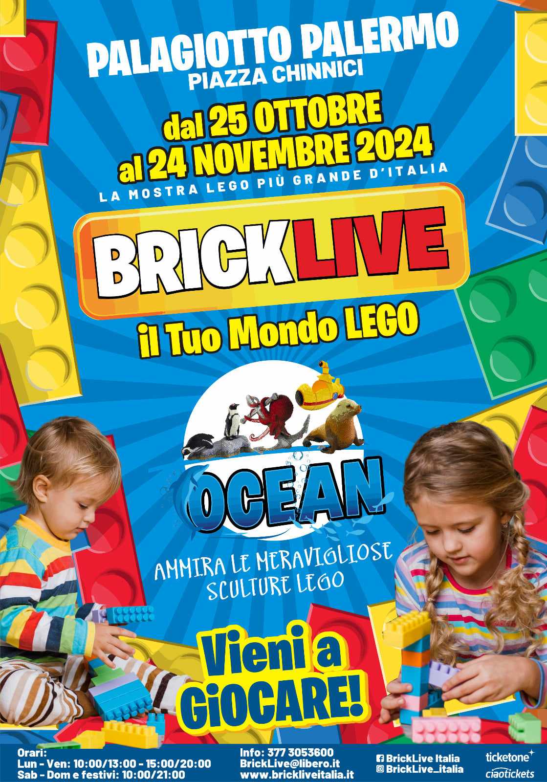 Dal 25 ottobre al 24 novembre 2024, al Palagiotto di Palermo in piazza Chinnici, arriva “BrickLive- il tuo Mondo LEGO e – BrickLive Ocean”, ” l’ atteso evento internazionale capace di conquistare i bambini di tutto il mondo. Con tanti milioni di mattoncini Lego, la possibilità di giocare insieme a tutta la famiglia liberando fantasia e creatività nel segno di un mondo ricco di colori ed emozioni senza età.