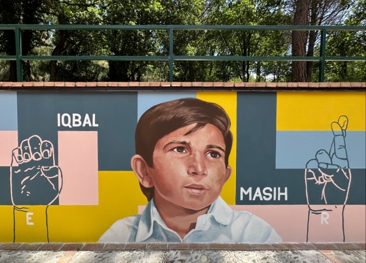 <span;>Per questo motivo l’opera d’arte è dedicata a Iqbal, un bambino pakistano che ha subito gli orrori dello sfruttamento infantile: venduto a un venditore di tappeti dal proprio padre per saldare un debito, Iqbal ha combattuto con tutte le sue forze la sua triste sorte. Fuggì e diede inizio a un movimento di ribellione contro lo sfruttamento dei bambini e di sensibilizzazione sul tema del lavoro minorile in diverse parti del mondo.