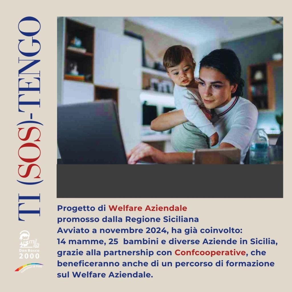 Per rispondere a questa realtà, l’Impresa Sociale Don Bosco 2000, con il sostegno della Regione Siciliana, ha avviato il progetto “TI-SOS-TENGO”, con l’obiettivo di promuovere la genitorialità e favorire la conciliazione tra lavoro e famiglia.