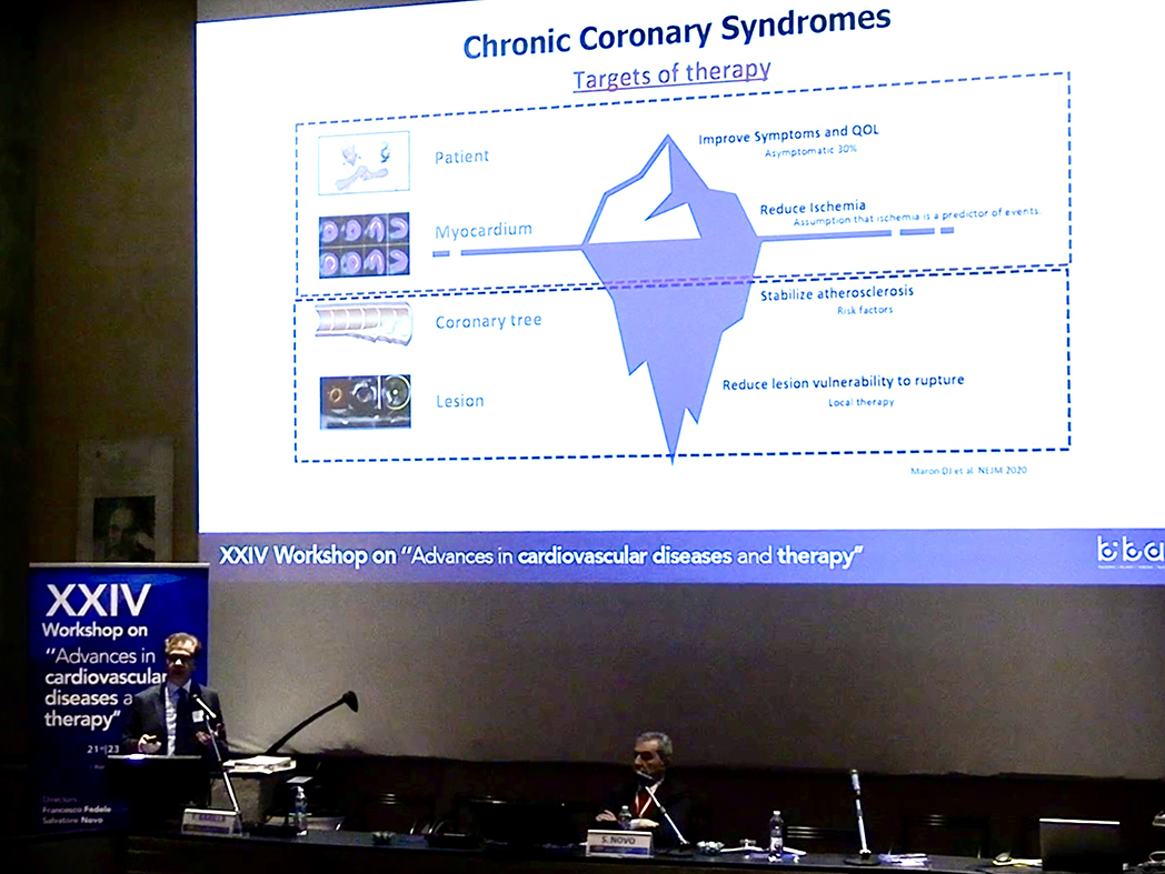 È stato ampiamente discusso il valore della prevenzione primaria attraverso la eliminazione del rischio da fumo di sigarette o la riduzione dello stesso con in nuovi prodotti a tabacco riscaldato (F. Beatrice, Torino), la valutazione del calcio coronarico per una diagnosi precoce di cardiopatia ischemica (L. La Grutta, Palermo), l’importanza dello stile di vita e della correzione dell’obesità (M. Rizzo, Palermo), la terapia ipocolesterolemizzante più idonea per il raggiungimento dei target appropriati di LDL-Colesterolo (M. Averna e B. Cefalù, Palermo), l’opportunità di un impiego precoce dei nuovi farmaci PCSK-9 inibitori per un rimodellamento precoce della placca aterosclerotica coronarica nell’infarto miocardico (G. Novo, Palermo).