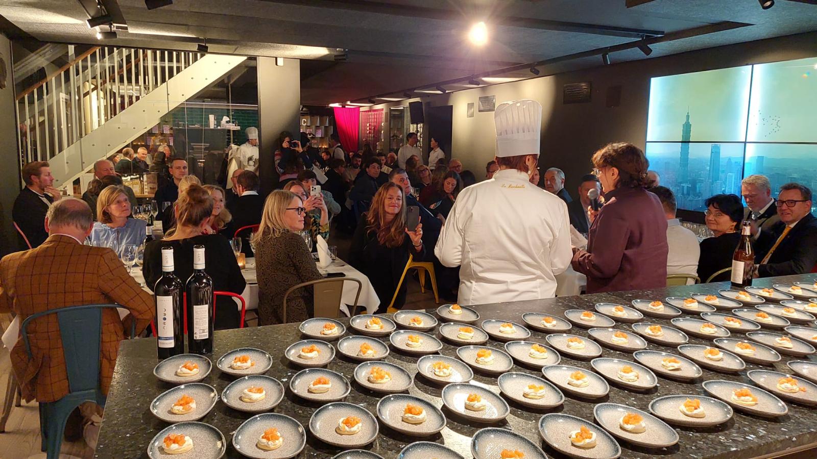 Ieri sera, l’Ambasciata ha accolto circa ottanta importatori di generi alimentari e gestori di ristoranti e pizzerie, tour operator nonché giornalisti e food blogger ad una serata campana, iniziata con un aperitivo a base di Pizza e Spumante di Falanghina, per continuare con un seminario sui prodotti tipici del Sannio e del Cilento e con una presentazione del territorio e del Parco Nazionale del Cilento e del Vallo di Diano. È poi seguito un cooking show ed una cena – sapientemente curata e commentata – dalla chef Gena Iodice dell’Alleanza Slow Food, in cui hanno avuto un posto d’onore la mozzarella di bufala campana, l’olio EVO del Sannio, il pomodorino del Piennolo, la pasta a lenta essiccazione, la cipolla di Vatolla e la Falanghina del Sannio.