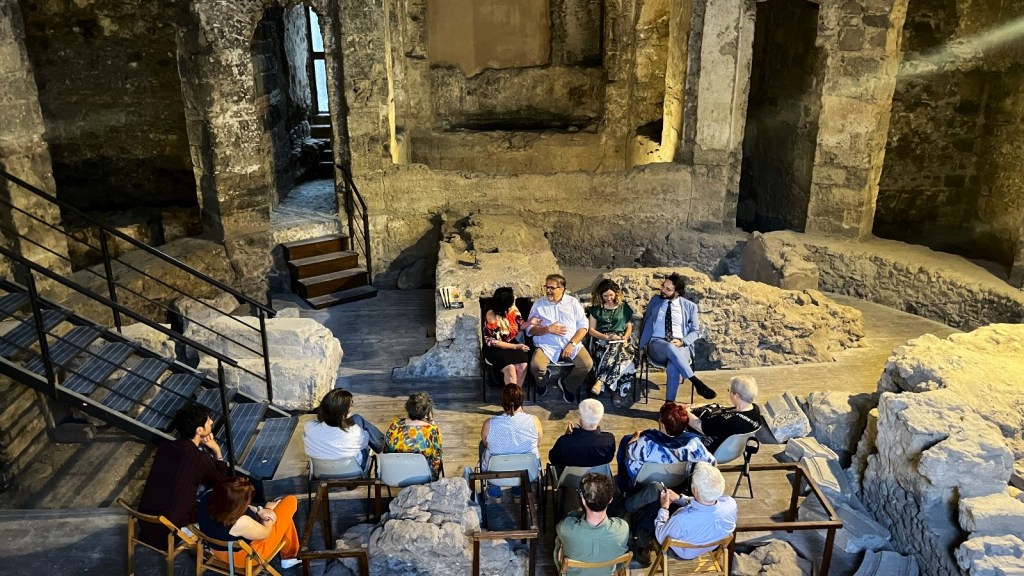 Presenti all’incontro, tra gli altri, la presidente dell’Archeoclub di Catania Giusi Liuzzo, Maria Antonietta Raciti, vicepresidente della Società Dante Alighieri, e la regista teatrale Cinzia Caminiti Nicotra, che diresse nel 2015 ‘Ntonia e Pasqualinu, tratto da Gran Circo Catania.