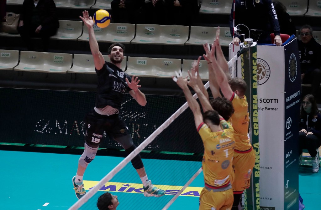 Marco Lionetti, in panchina nel ruolo di primo allenatore a causa dello stato influenzale che ha colpito Camillo Placì, schiera il sestetto base con capitan Davide Saitta in regia opposto ad Andrea Argenta, Luka Basic e Javad Manavi in posto 4, Elia Bossi e Filippo Bartolucci al centro e Francesco Pierri nel ruolo di libero.